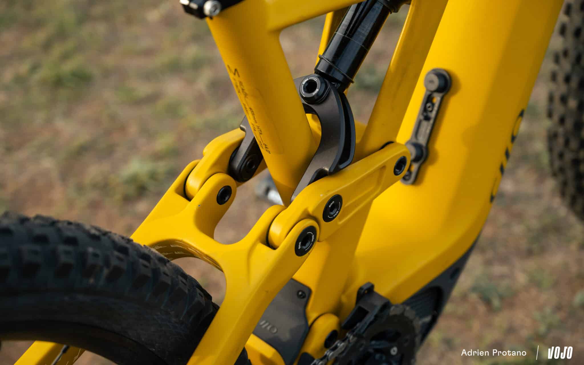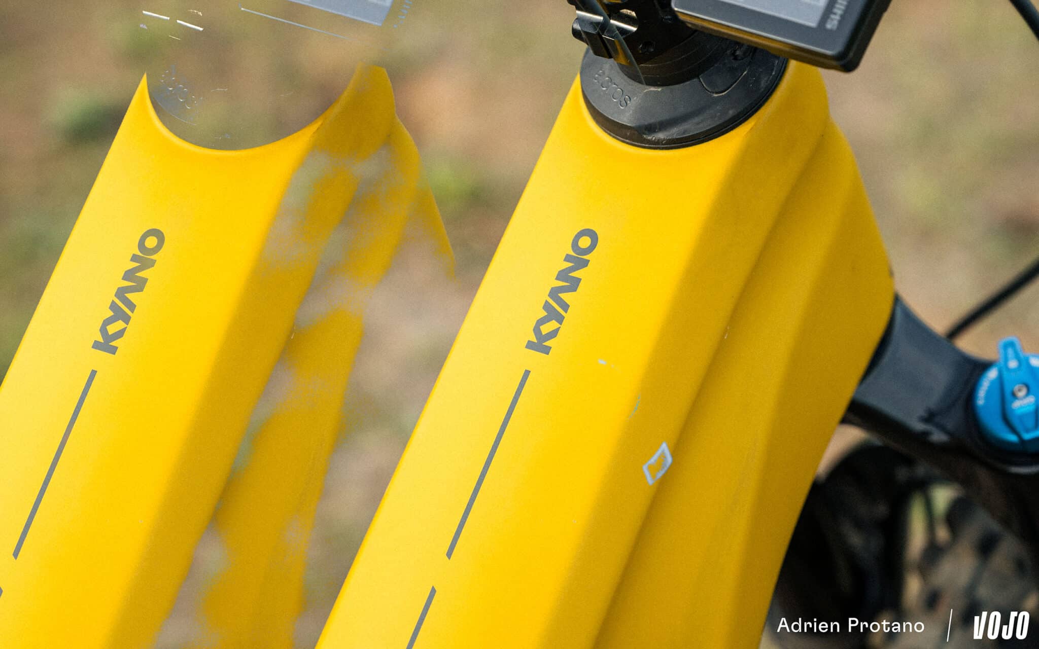 Le Kyano penche quant à lui clairement vers l’enduro, avec un débattement qui passe à 170 mm à l’avant et 160 mm à l’arrière.