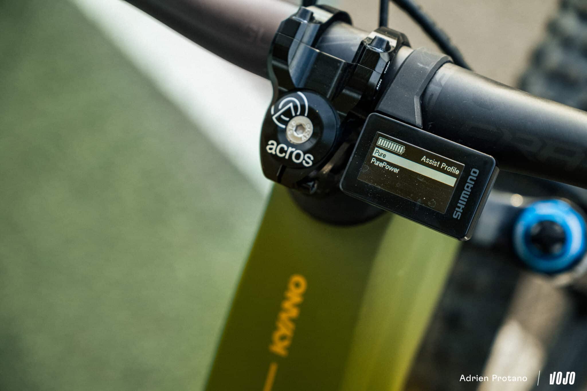 Comme sur le Tanay, le moteur Shimano peut être utilisé au moyen de deux profils d’assistance : un premier qui favorise l’autonomie en lissant la manière dont est délivrée la puissance, et un second qui offre le plein potentiel du moteur de 85 Nm. Les deux modes peuvent être personnalisés et enregistrés via l’application Shimano.