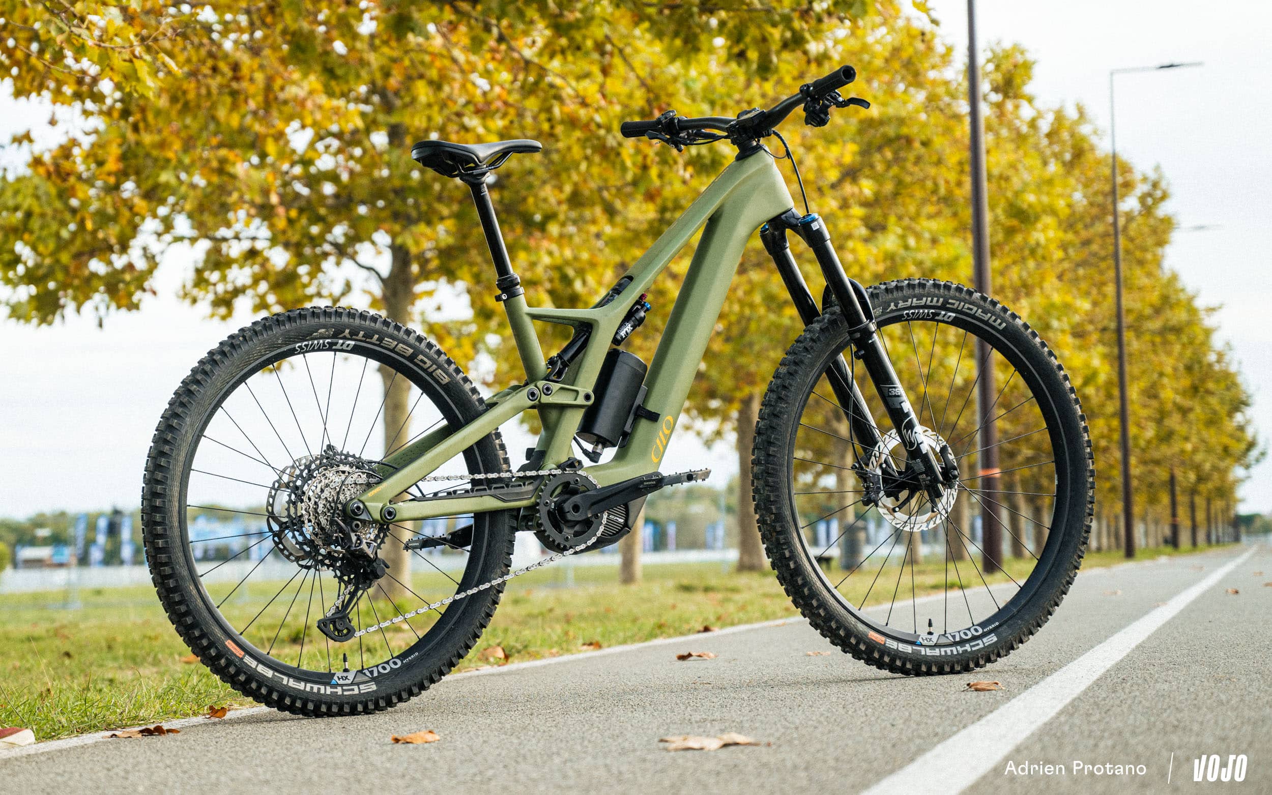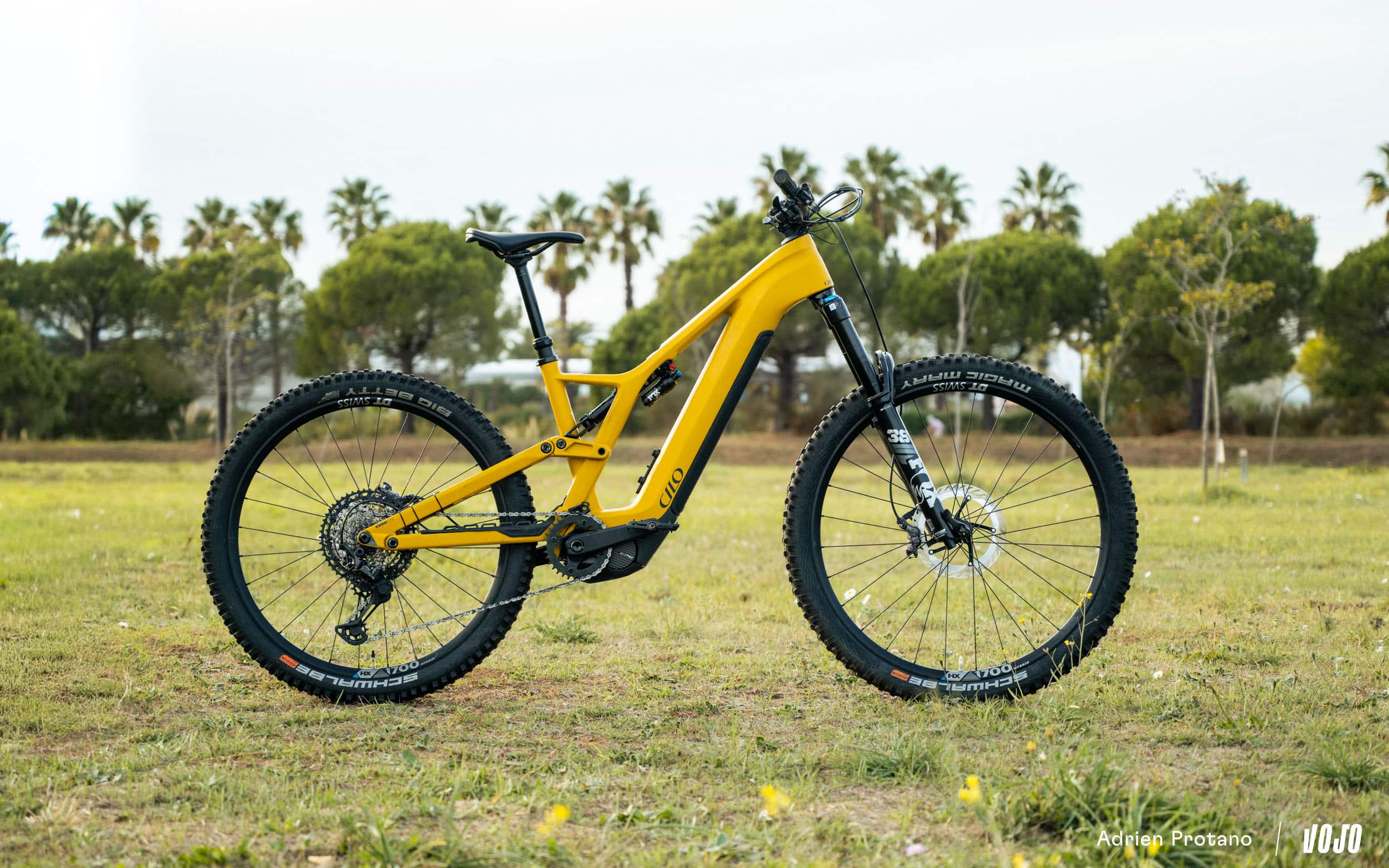 Le Kyano est disponible en cadre carbone uniquement, en version HC (batterie amovible) et en version C (batterie intégrée 400Wh) à partir de 5499€. Le modèle présenté est le C2 avec sa batterie intégrée de 400Wh, au prix de 8499€.
