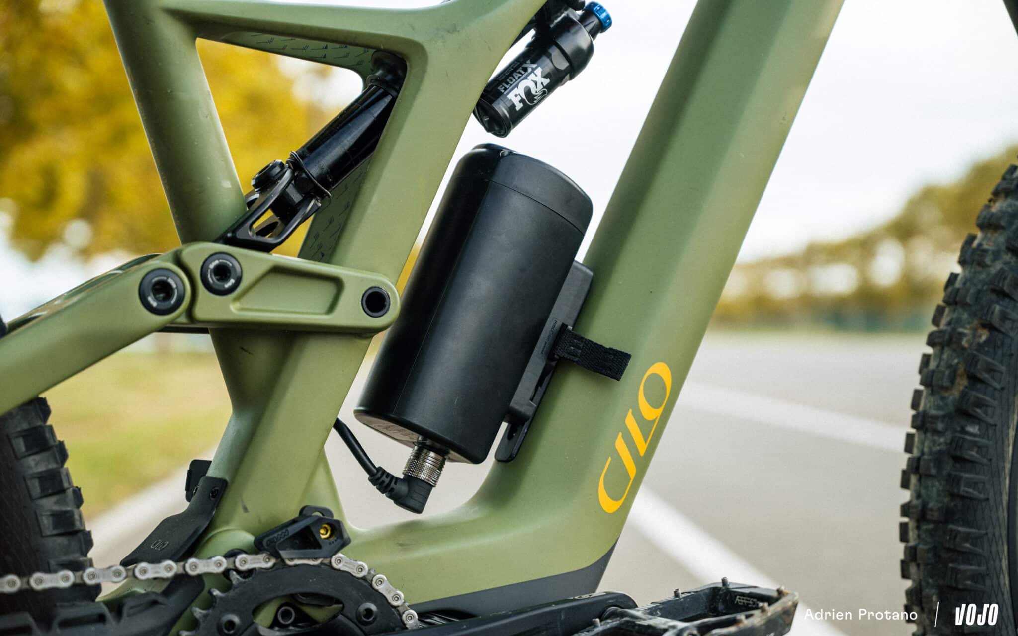 Celles-ci peuvent être complétées par l’usage d’un Range Extender, soit ces batteries additionnelles qui prennent la forme de bidon, et viennent se placer au niveau du porte-bidon grâce à une plaque d’adaptation Fidlock (ici en photo sur le modèle Tanay).