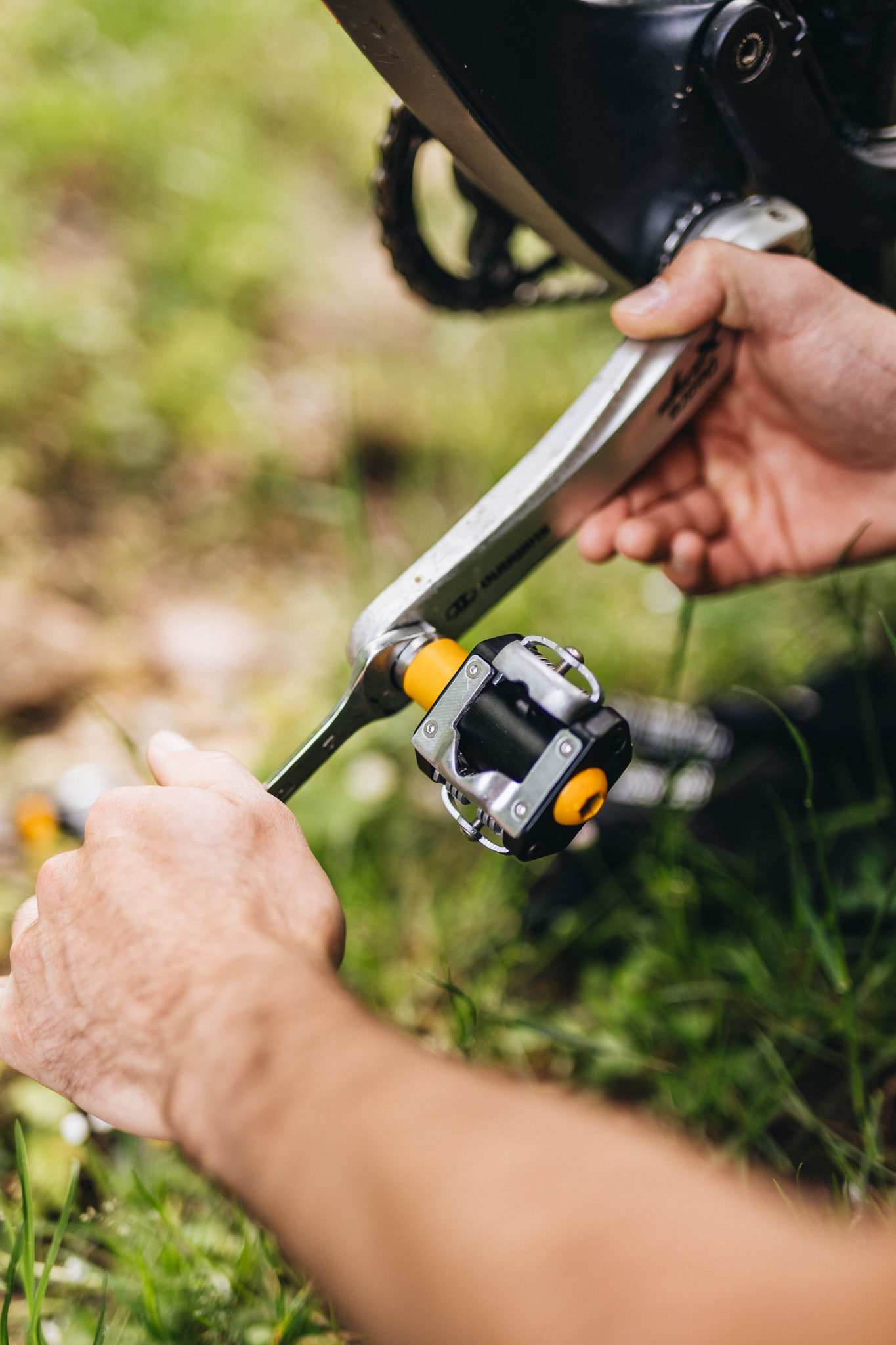Pour démonter les pédales, pas de clé hexagonale de 6 ou 8 mm comme on en a l’habitude mais une clé plate de 15, « l’ancien standard ». En effet, le creux de l’axe où se trouve l’empreinte hexagonale est occupé par le support magnétique qui reçoit le chargeur, spécifique à ces pédales. A propos de charge, CyclOptim annonce une autonomie d’au moins 30 heures, et 5 heures pour une charge complète.