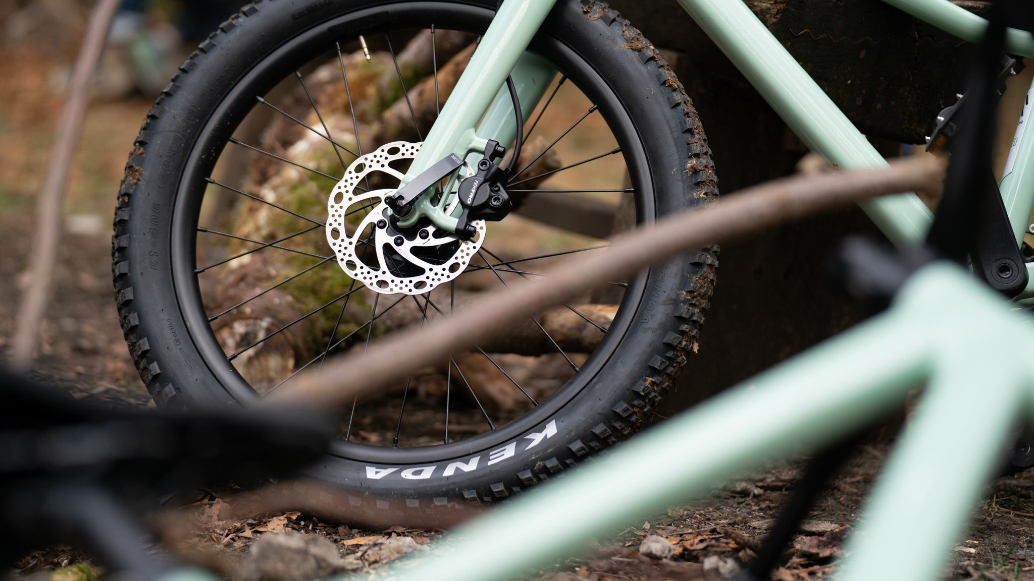 Les équipements sont à l’avenant : transmission monoplateau Sram X4 avec cassette 8 pignons 11-34 et plateau de 32 dents, freins à disques hydrauliques Tektro avec disques de 140 mm et leviers spéciaux pour les petites mains ou encore de vrais pneus larges et polyvalents (Kenda Booster 2.4) pour compenser l’absence de suspension.