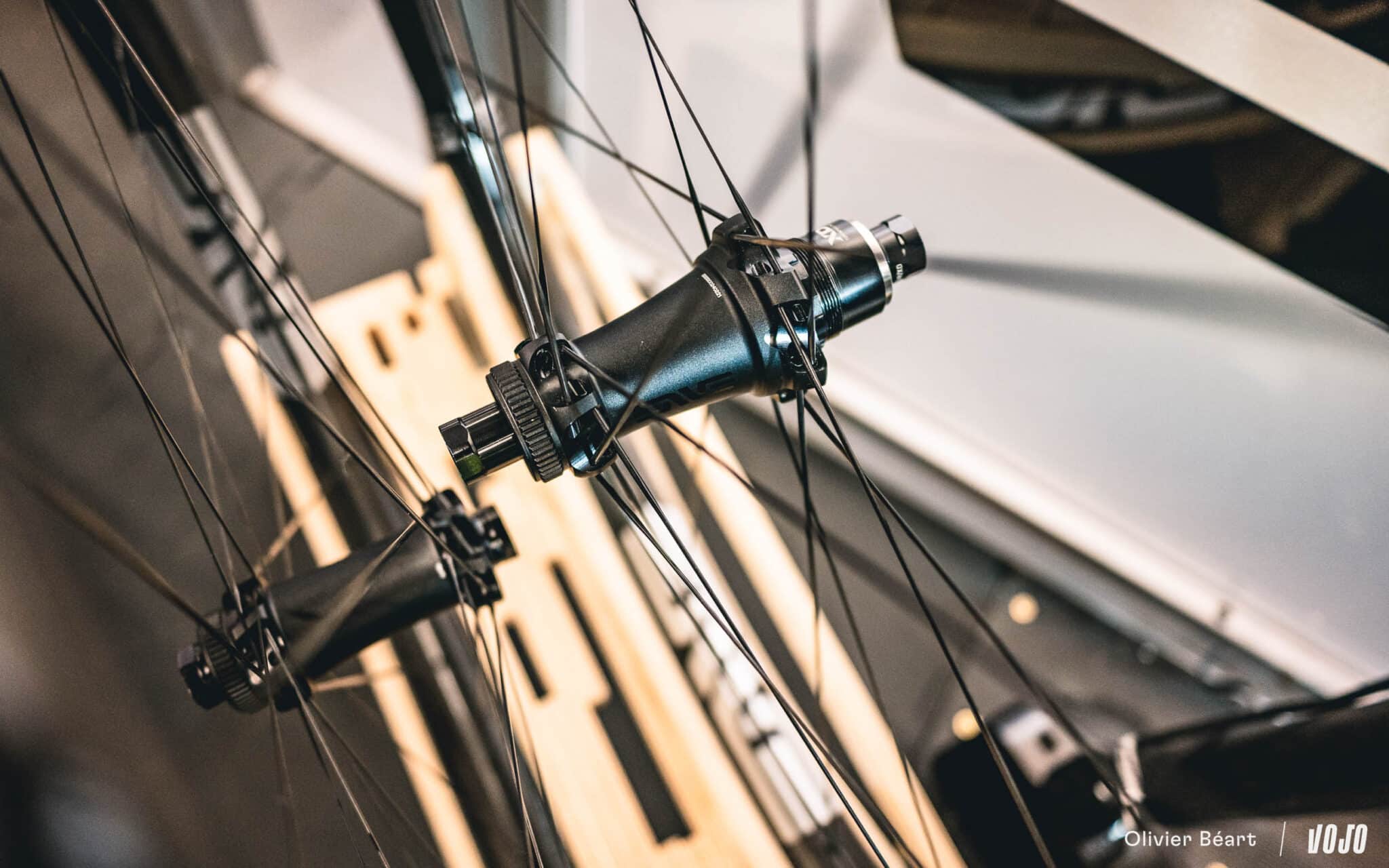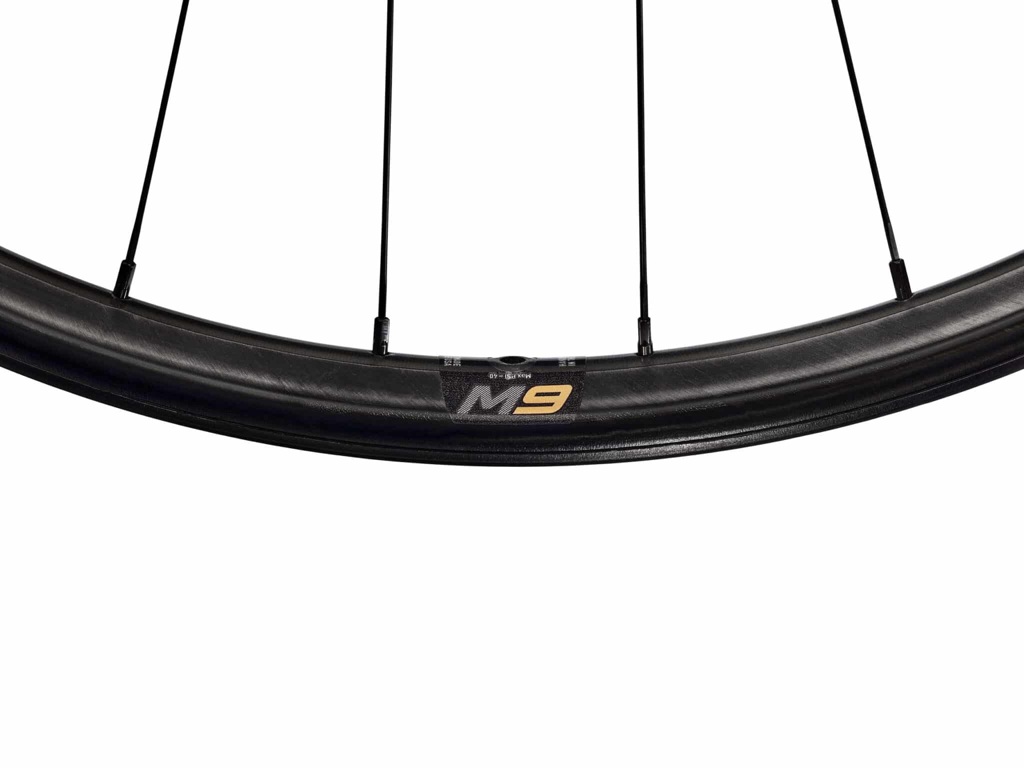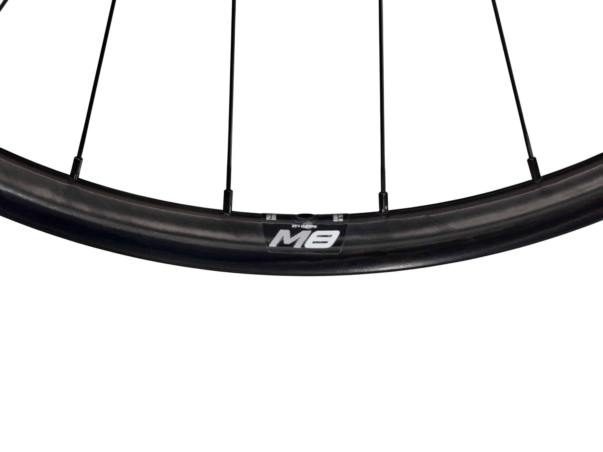 Les M8 sont directement dérivées des M9, mais avec un layup de carbone spécifique et sans le fond de jante spécial, ce qui leur permet d’être plus légères. La paire est tout de même annoncée à 1961 g, pour des largeurs de 32/29 mm avant/arrière.