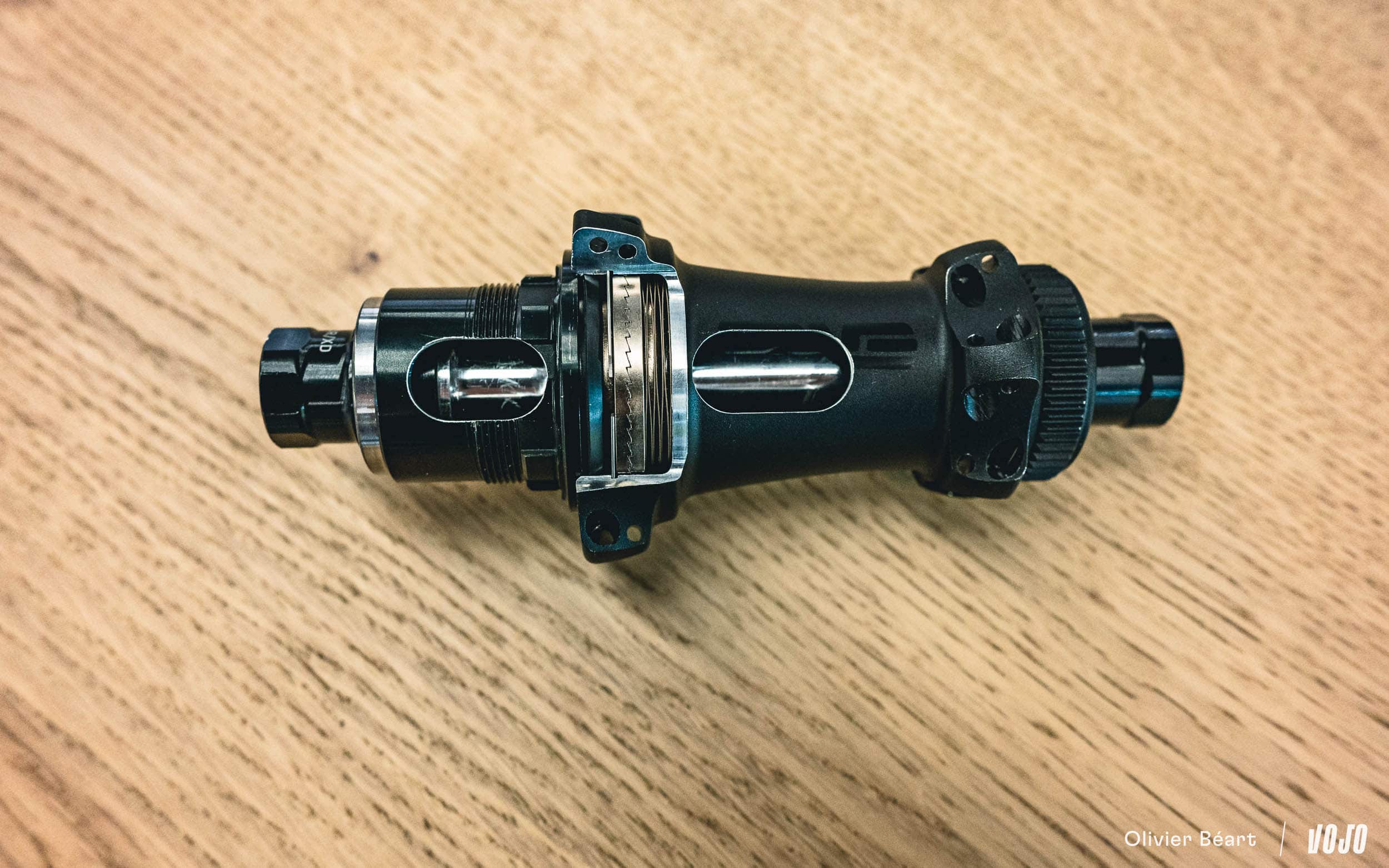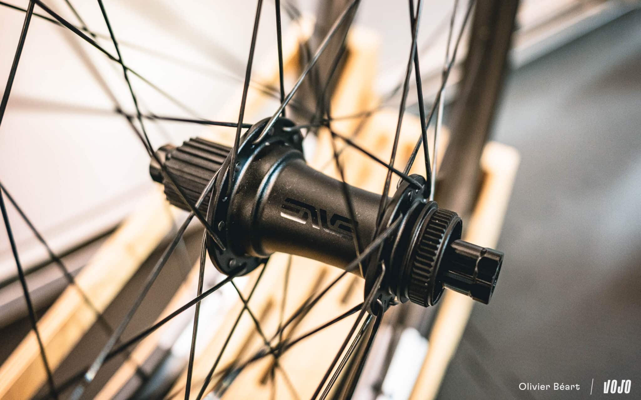 Enve a également développé ses propres moyeux baptisés Innerdrive avec une roue-libre de type ratchet. Quatre options de liberté angulaire seront disponibles : 9° (40 dents), 6° (60 dents), 4,5° (80 dents) et 3,6° (100 dents). Il ne s’agira pas de question de niveau de gamme, puisque les quatre options seront proposées au client, qui pourra choisir selon sa pratique, ses besoins et ses affinités. Enve dit avoir particulièrement soigné la protection des roulements.