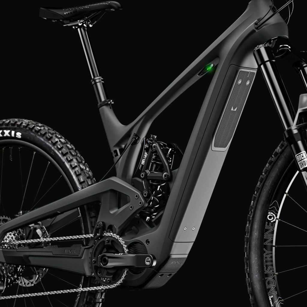 Deux montages figurent au catalogue, tous deux uniquement disponibles en coloris Wasabi Shadow. Le premier est à base de Shimano Deore XT, suspensions RockShox Zeb et Super Deluxe Coil Ultimate, roues Industry9 (jantes Enduro S, moyeux Hydra) et devrait coûter autour 11 999 €. Plus exclusif encore, l’autre profite de suspensions Fox 38 Grip 2et Float X2 Factory ainsi que de roues Evil Loopholes (moyeux Industry9 Hydra) pour faire grimper le tarif à 13 999 €.