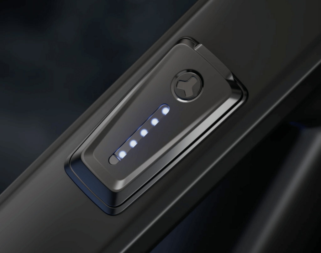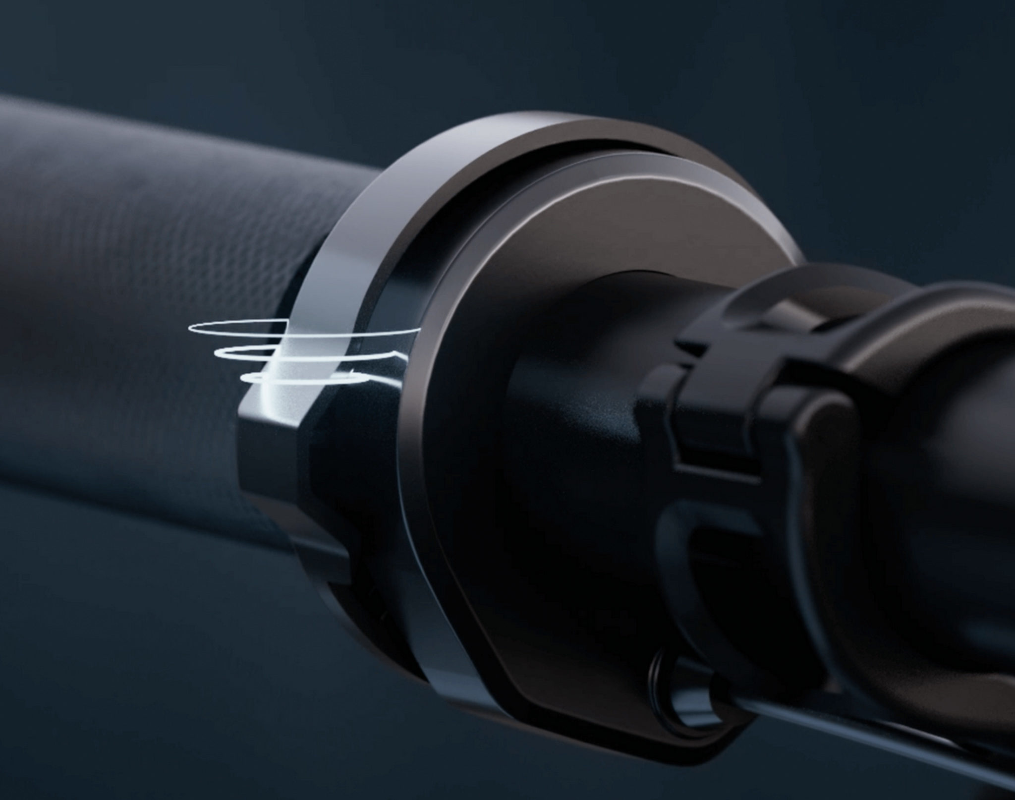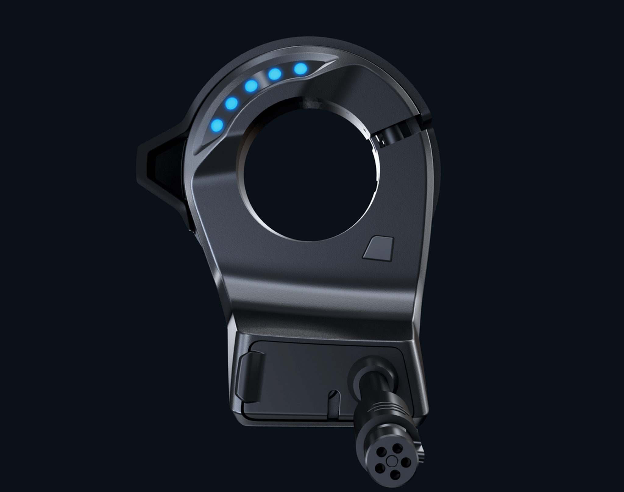 - un Ring Control discret au cintre pour tout commander et un Led Hub intégré dans le tube supérieur, avec 5 leds colorées pour l’affichage du niveau de batterie et du mode d’assistance en cours (Breeze en vert/ River en bleu/ Rocket en rouge), un port USB-C et la connectivité Bluetooth Low Energy/ANT+,