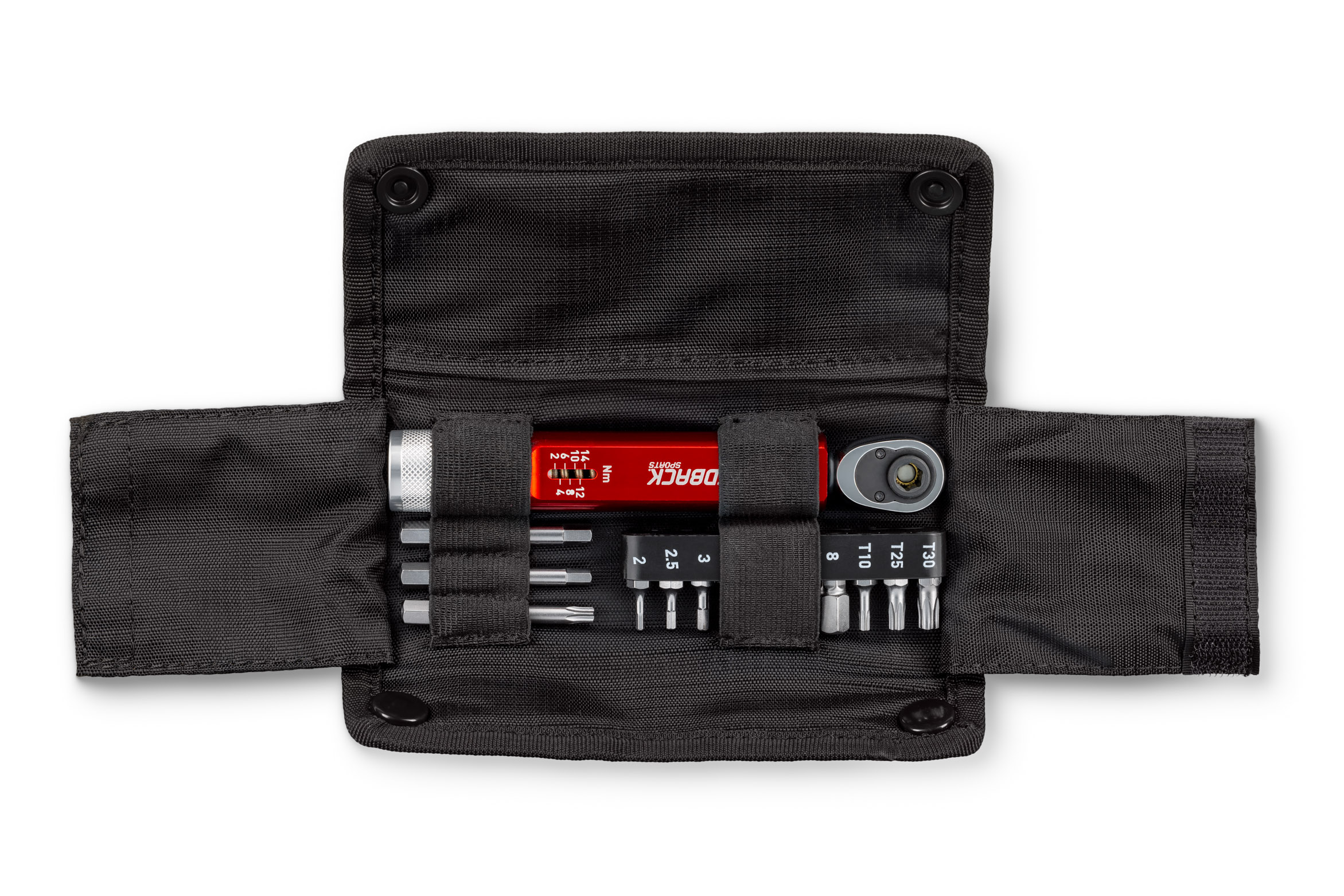 13 embouts sont fournis de série avec la clé, à savoir Hex : 2, 2,5, 3, 4, 5, 6, 8 mm (longueur standard de 25 mm) ; Torx : T10, T25, T30 (longueur standard de 25 mm) ainsi que les embouts d’extension : Hex 4, 5 mm et Torx T25 (longueur étendue de 50 mm).