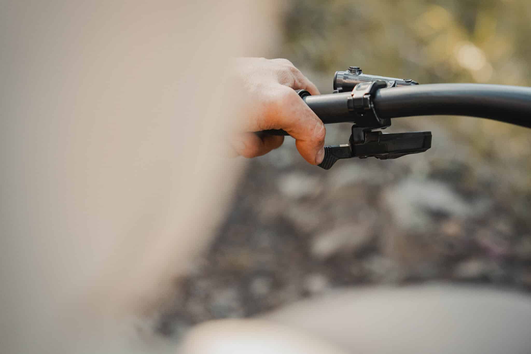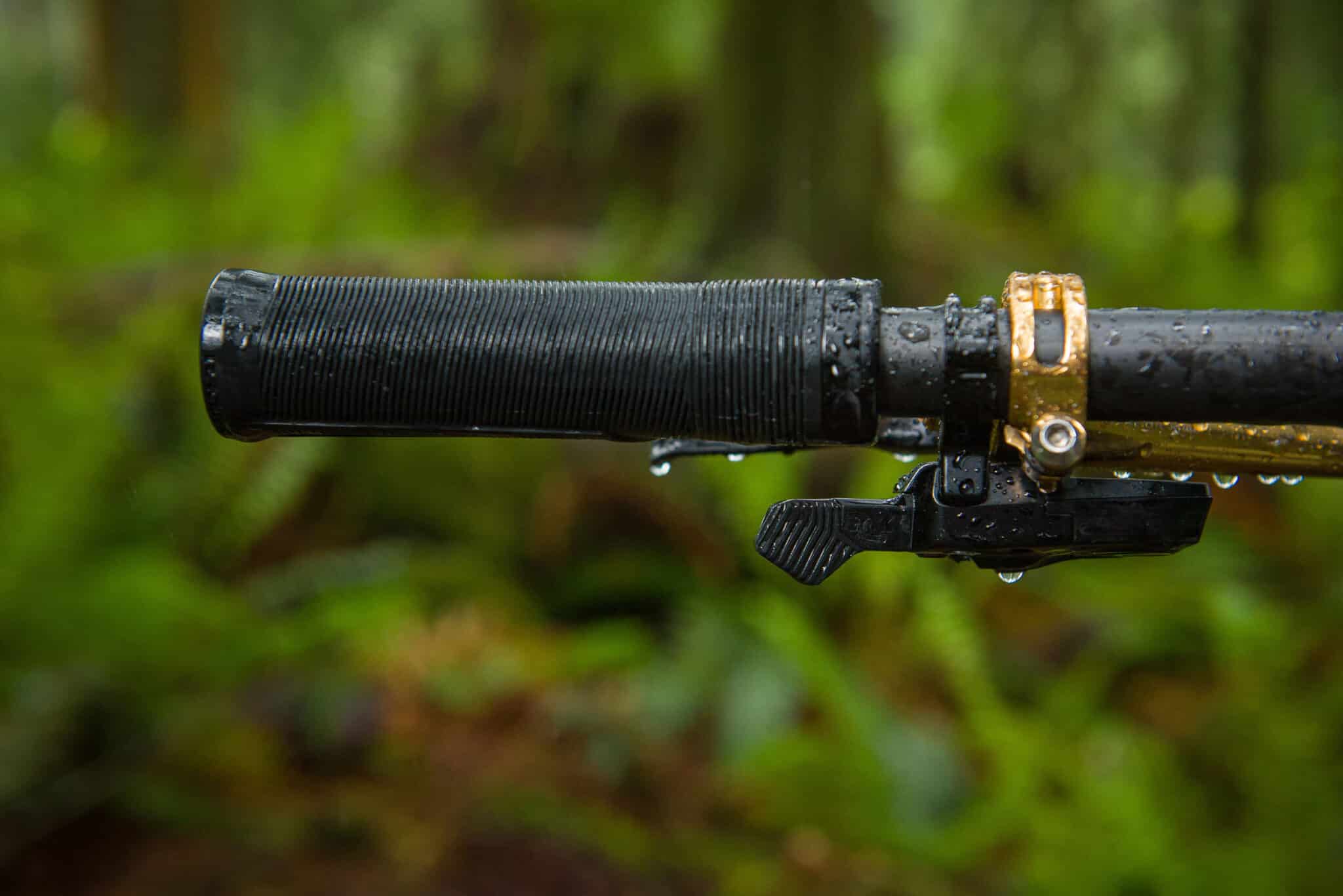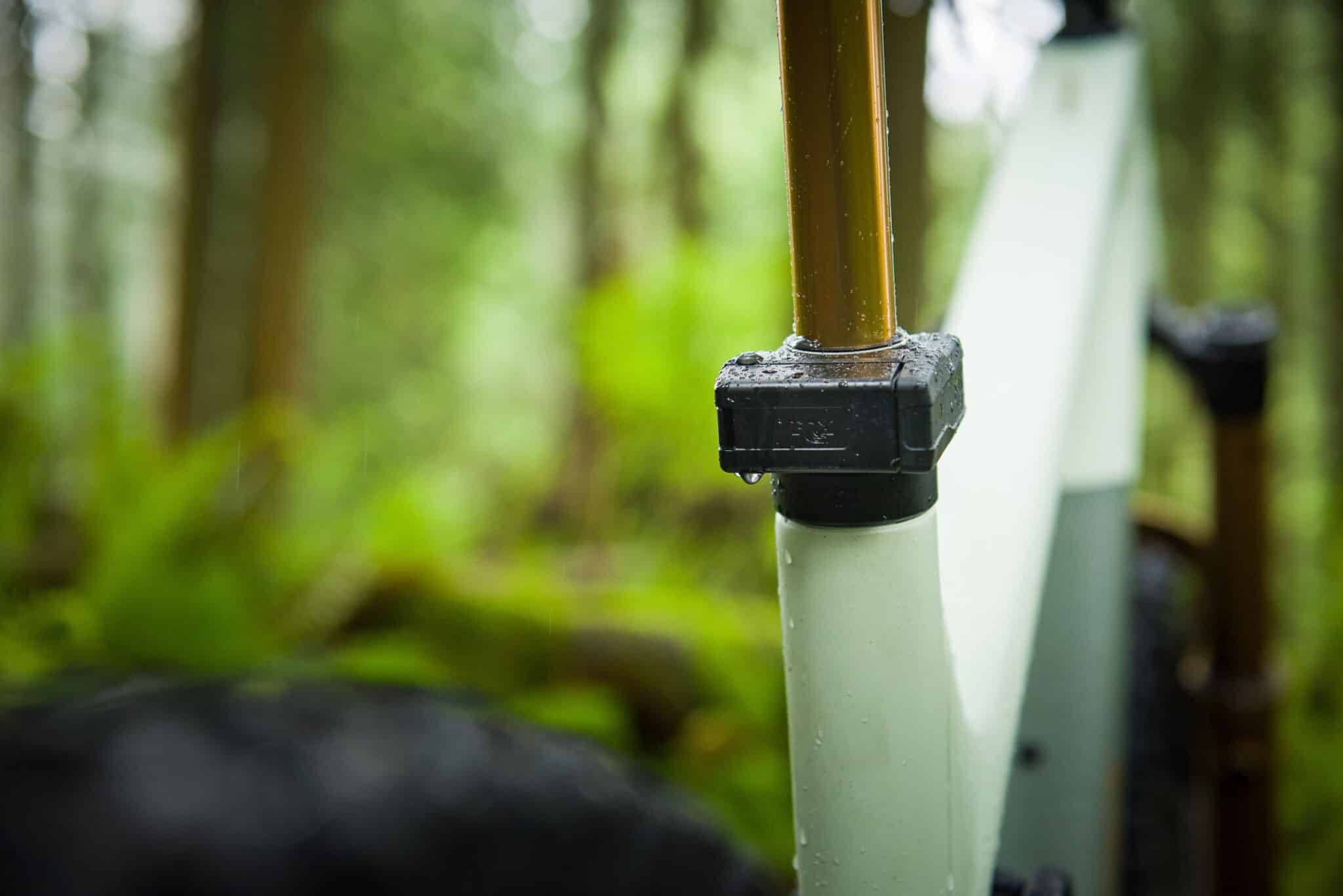 Le levier, justement, a été dessiné pour être le plus proche possible du cintre : seulement 36 mm, soit environ 10 mm de moins que la concurrence. Idéal pour éviter les impacts avec le tube supérieur en cas de crash. La partie en contact avec le doigt est recouverte de caoutchouc et dispose d’un « retour haptique », c’est à dire qu’elle produit une sensation de « clic » qui permet d’être sûr que la commande a bien été activée. Elle dispose d’un collier mais elle est aussi compatible Matchmaker (Sram) et i-Spec (Shimano). Comme la tige, elle est certifiée IPX7 au niveau de l’étanchéité.