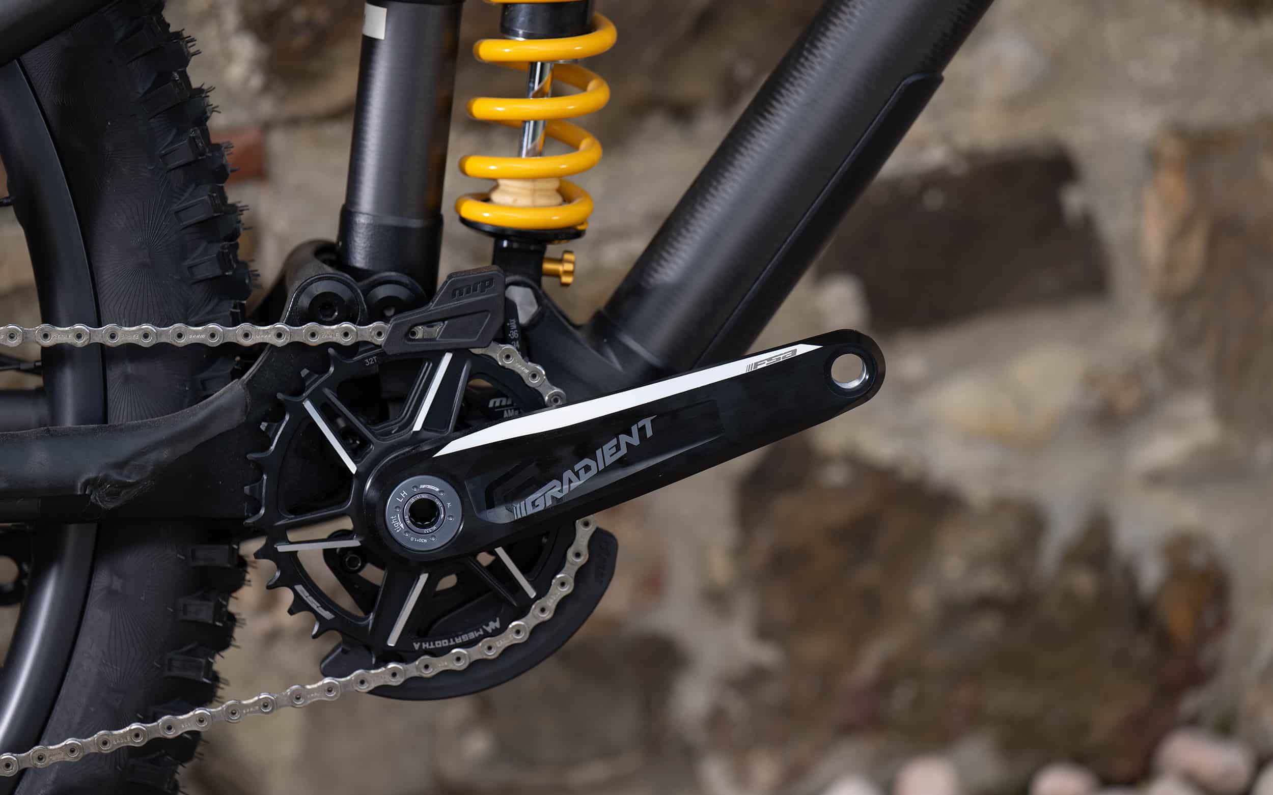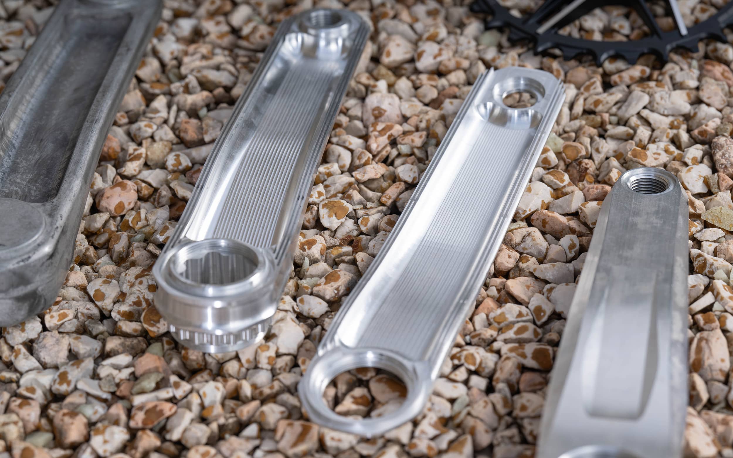 Les manivelles Gradient sont fabriquées en aluminium forgé avec des finitions CNC, où les deux moitiés de chaque bras de manivelle sont fabriquées à partir d’un seul bloc de matériau et ensuite collées ensemble sans soudure.