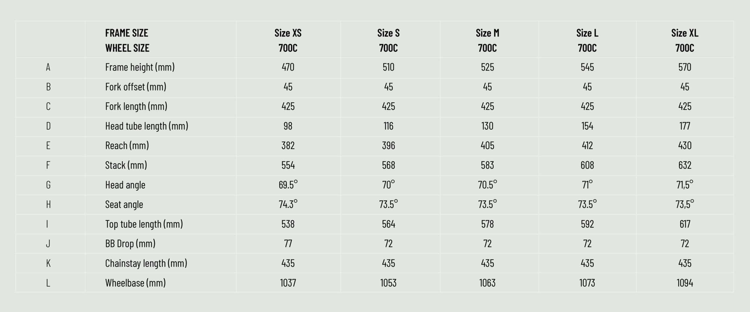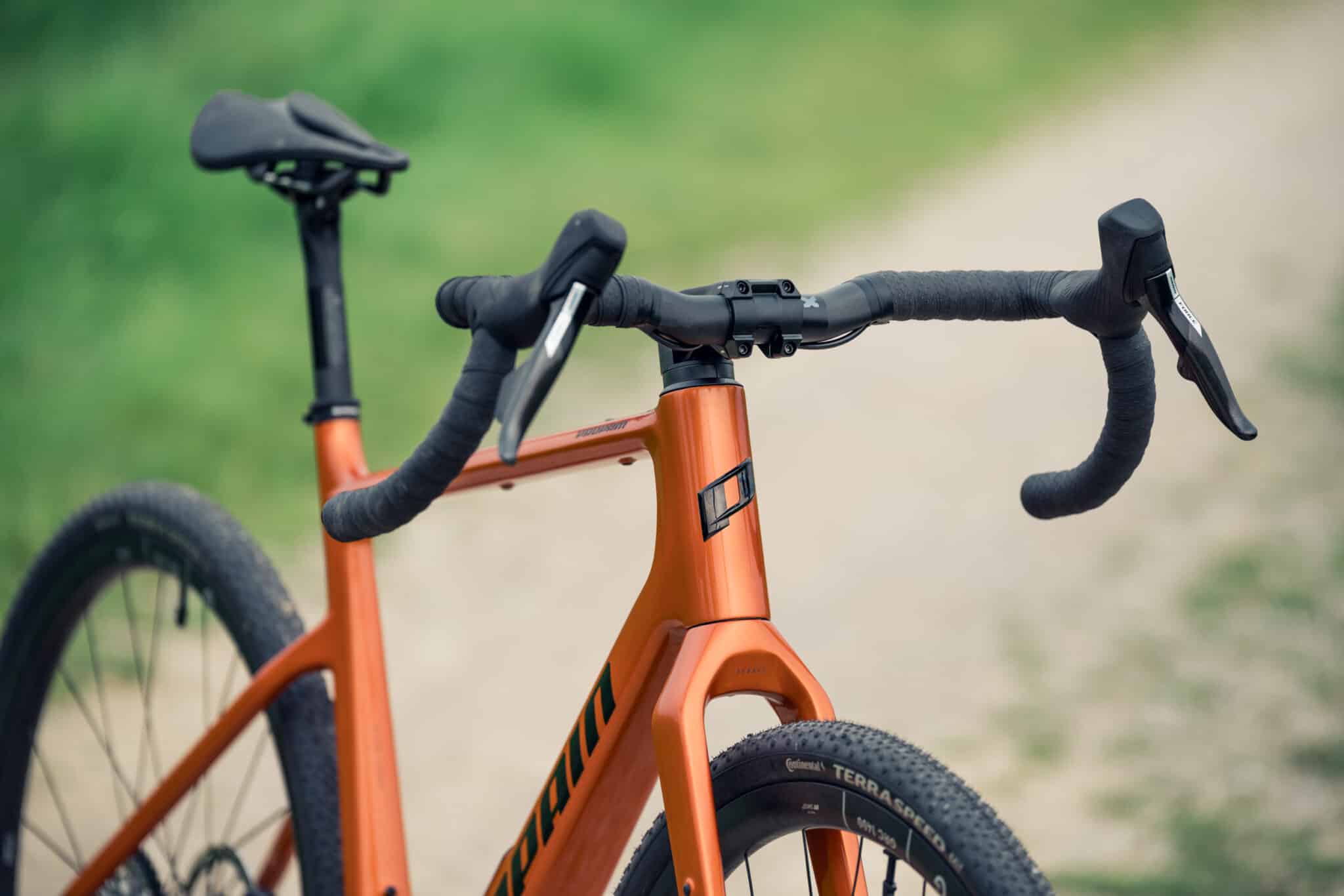 Le dégagement est suffisant pour des pneus jusqu’à 700×50, les supports Flatmount des étriers de freins sont prévus pour des disques de 160 mm (possible de monter à 180 mm avec des adaptateurs), le tube de selle en 27,2 mm peut accueillir une tige de selle télescopique et la géométrie est conçue pour accepter une fourche de 40 mm de débattement.