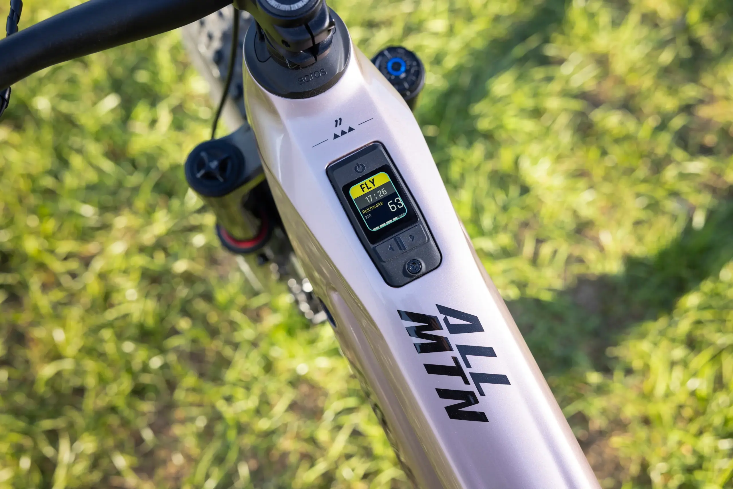 Le AllMtn CF TRN/IQ affiche un débattement de 160 mm à l’avant comme à l’arrière, avec une ouverture au niveau de la fixation de l’amortisseur sur le tube supérieur assez originale. Pour le reste, on notera le montage de roues mulet (29″ à l’avant, 27,5″ à l’arrière) et la batterie amovible de 800 Wh.