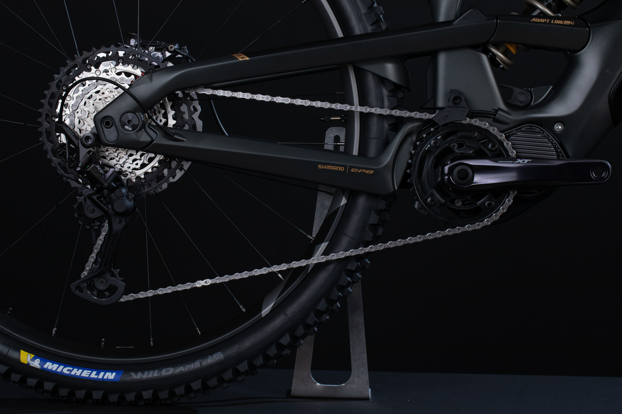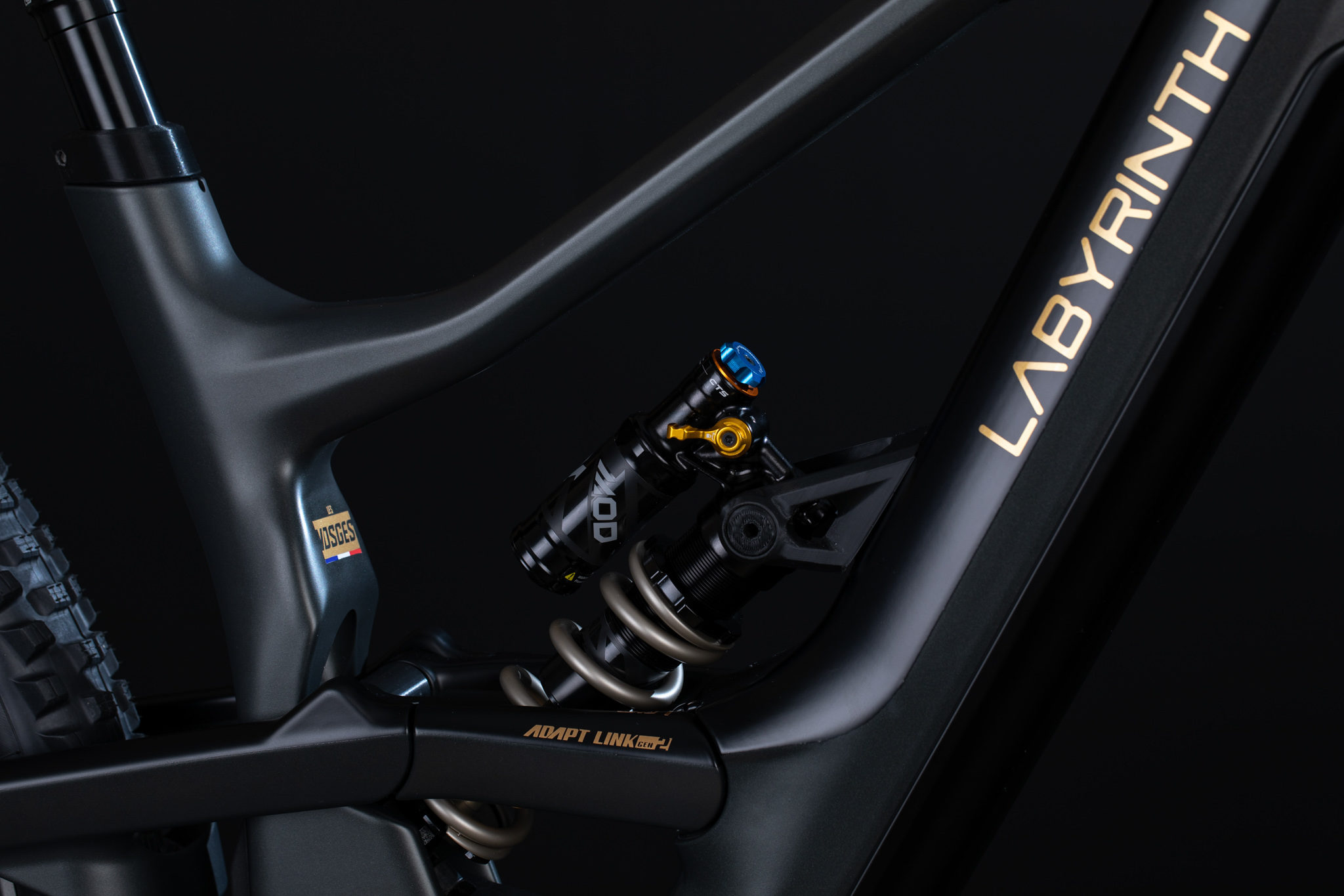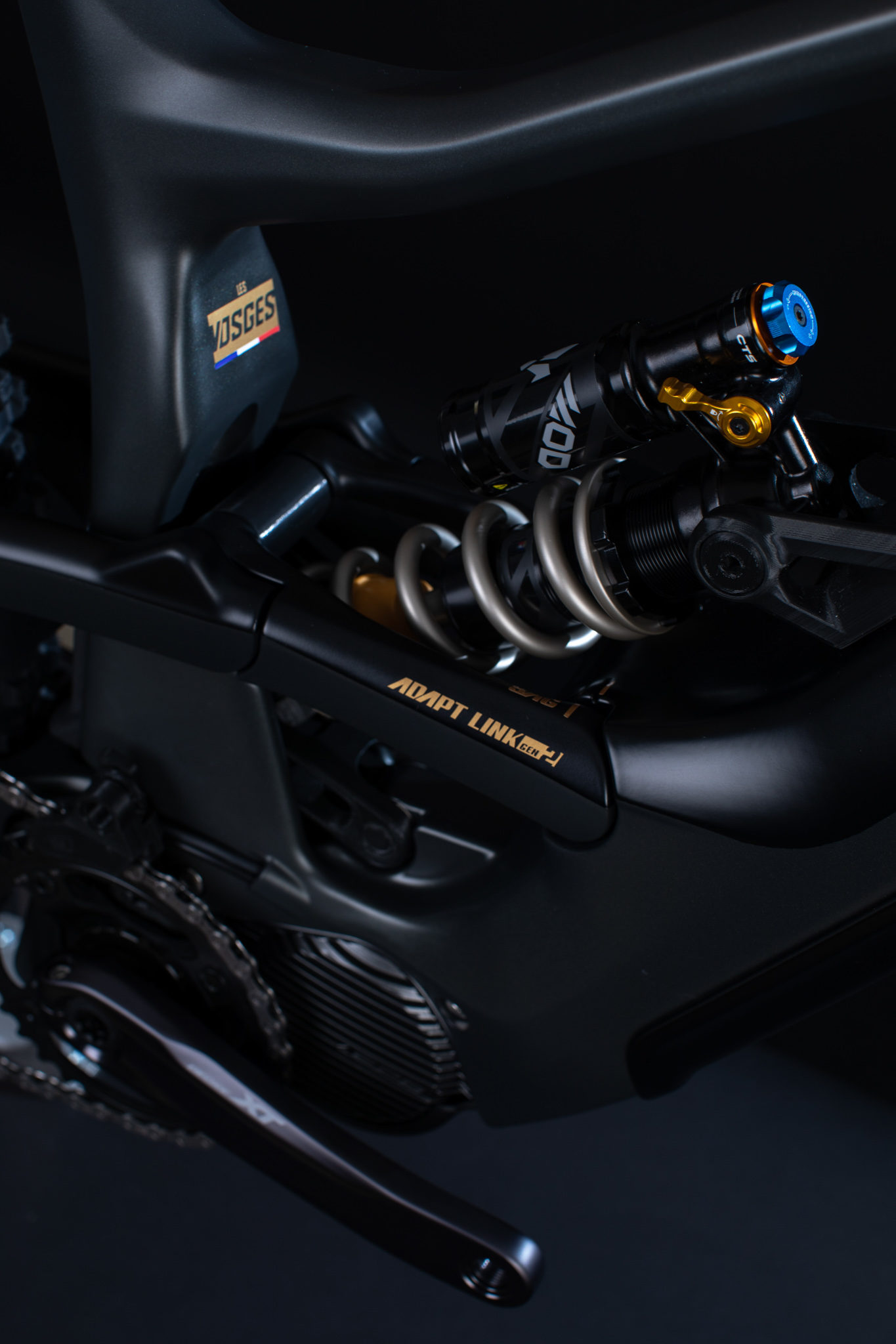 Enfin, le travail autour des lignes du vélo elles-mêmes rappelle cet objectif, notamment au niveau du triangle arrière et de la suspension Adapt-Link 2 qui masque joliment son format très classique de 4-bar linkage Horst Link (voir notre lexique), avec point de pivot sur les bases.