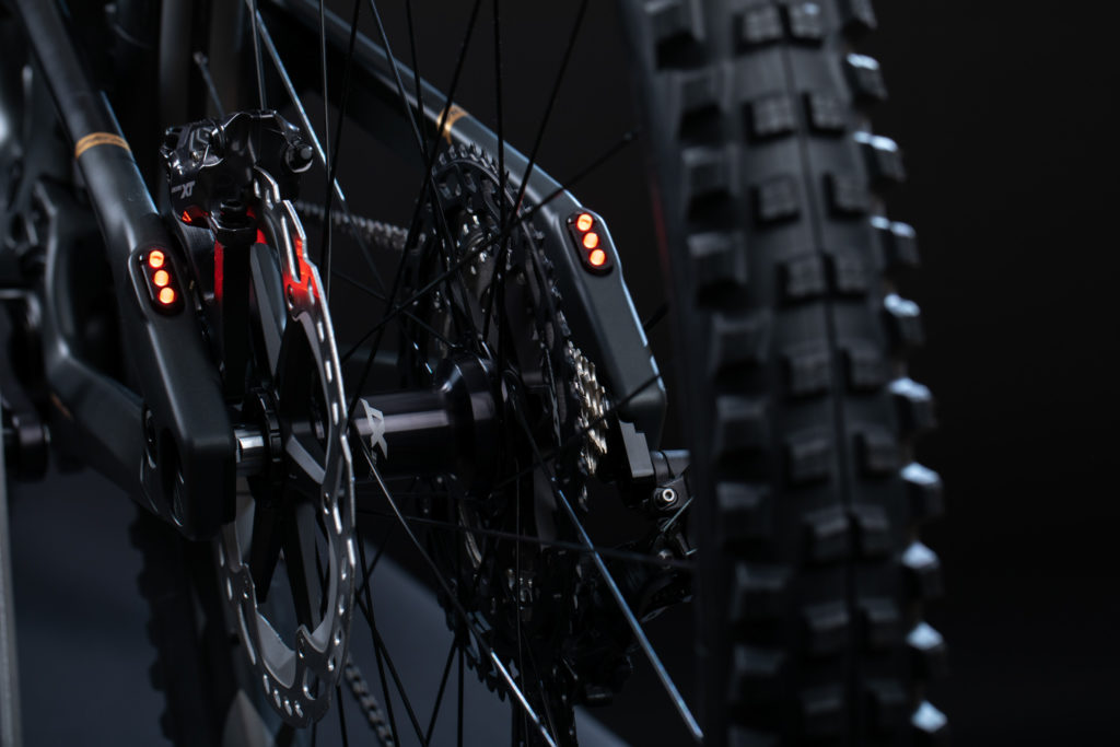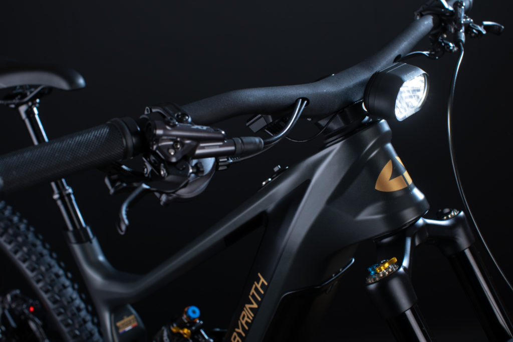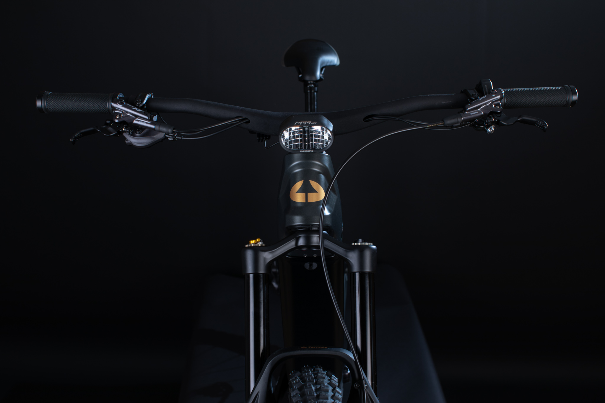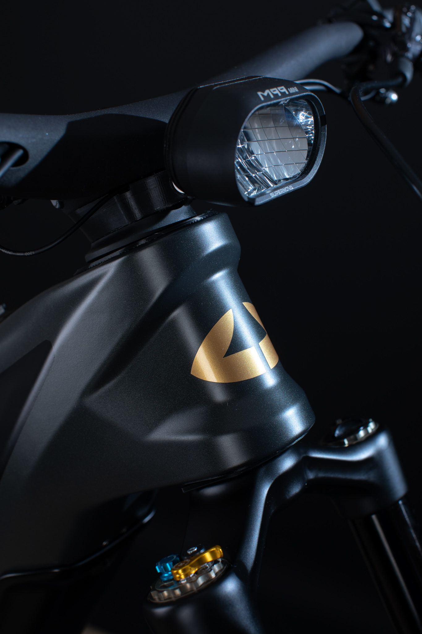 En parallèle, la marque a particulièrement travaillé autour de l’intégration. Des composants d’abord, avec un ensemble cintre-potence en une pièce (et en carbone) développé en interne qui comprend des orifices pour le passage interne des câbles et Durits. Des accessoires ensuite, avec un système d’éclairage baptisé Supernova. A l’arrière, les feux sont intégrés directement dans les haubans tandis qu’à l’avant, la lampe prend appui sur une entretoise de jeu de direction.