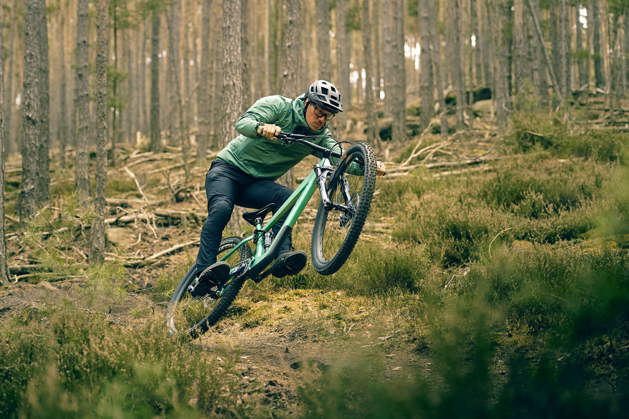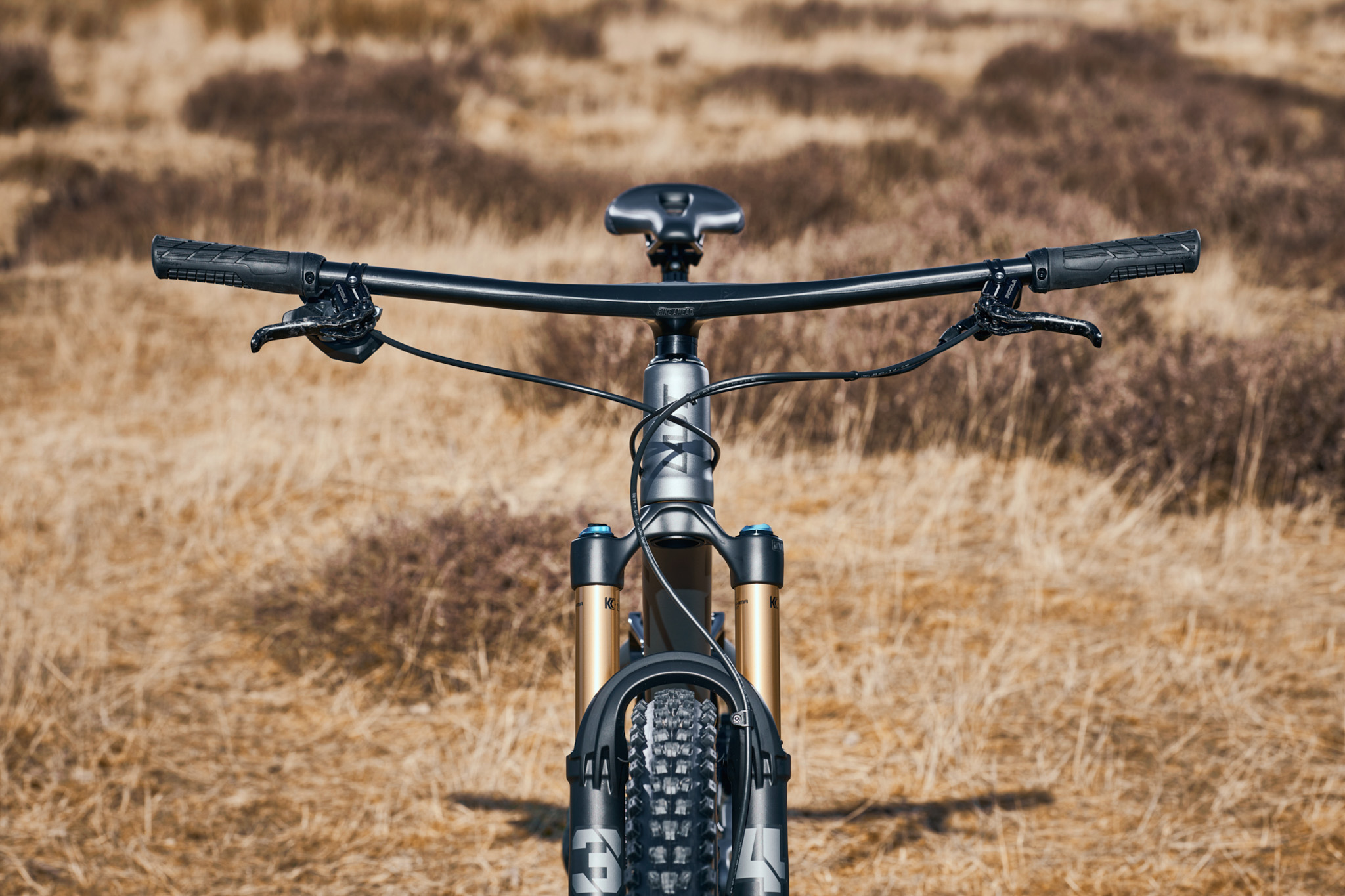Le Celos est monté avec un amortisseur en 210×50 mm qui lui permet de développer 120 mm de débattement à l’arrière, et la marque préconise de monter une fourche de même débattement à l’avant.