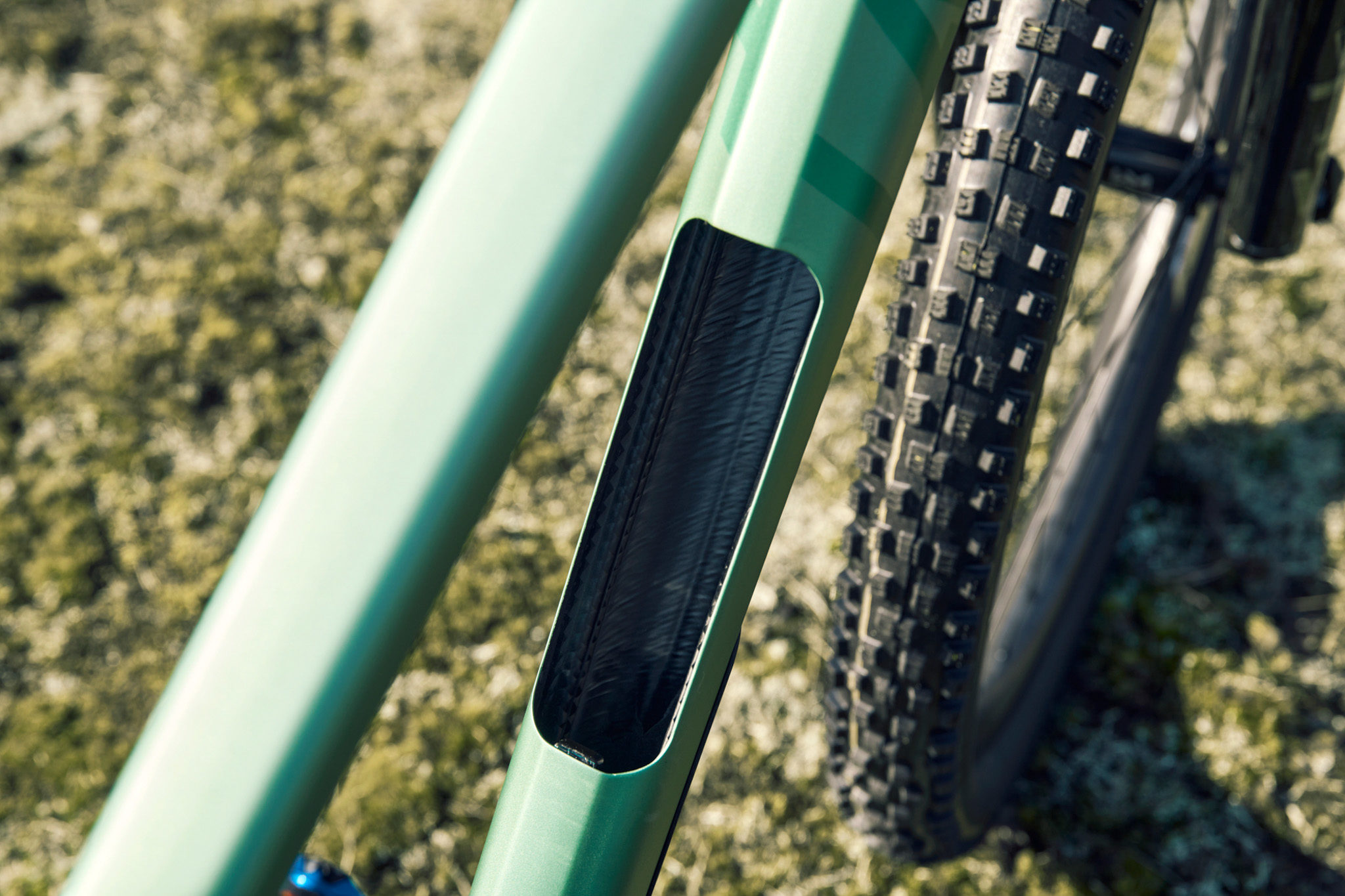 - l’autre plus solide, qui profite en plus d’un espace de rangement intégré dans le tube diagonal (avec deux sacoches fournies), la Superduty-layup. Ici, le cadre est à 2,1 kg ce qui reste léger pour la catégorie.