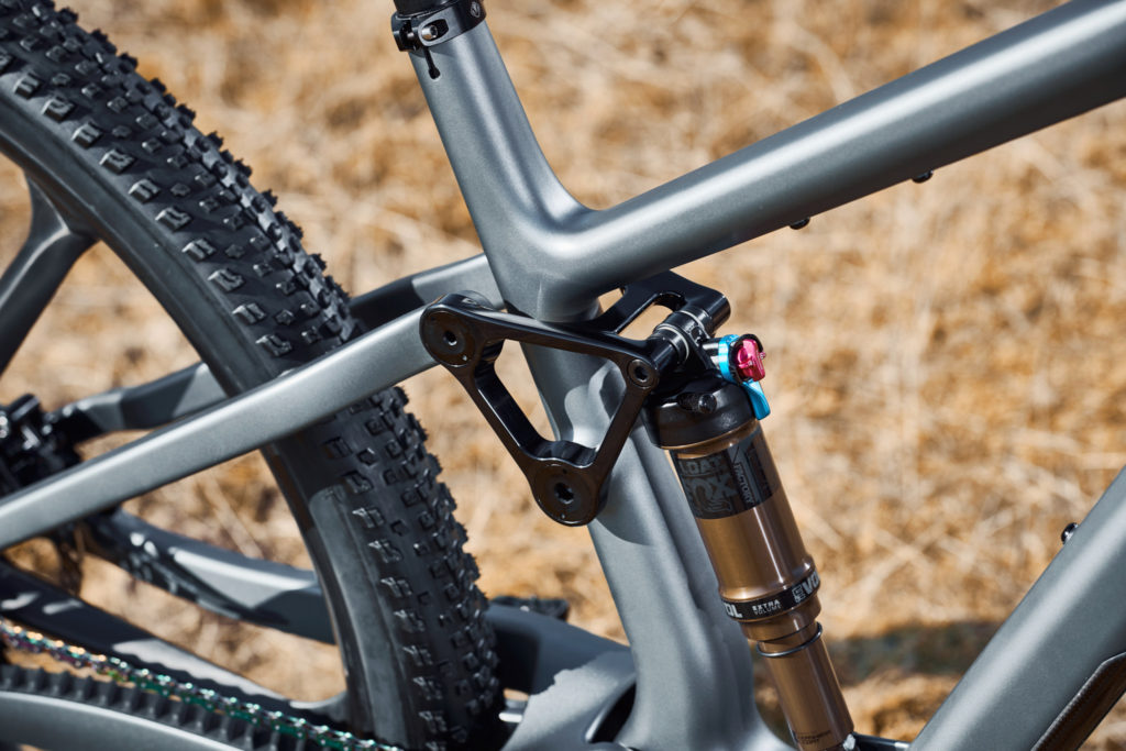 La suspension utilise la même architecture que le sur le Tarvo et le Cinto, à savoir un monopivot + biellette avec haubans flexibles. Cette construction est très populaire sur les tout-suspendus de XC pour ses avantages en termes de poids, de simplicité et de rigidité mais plus rare lorsqu’on monte en débattement, voire exceptionnelle en enduro car tout de même contraignante (flexion importante des haubans, moins de libertés qu’avec un système à point de pivot virtuel).