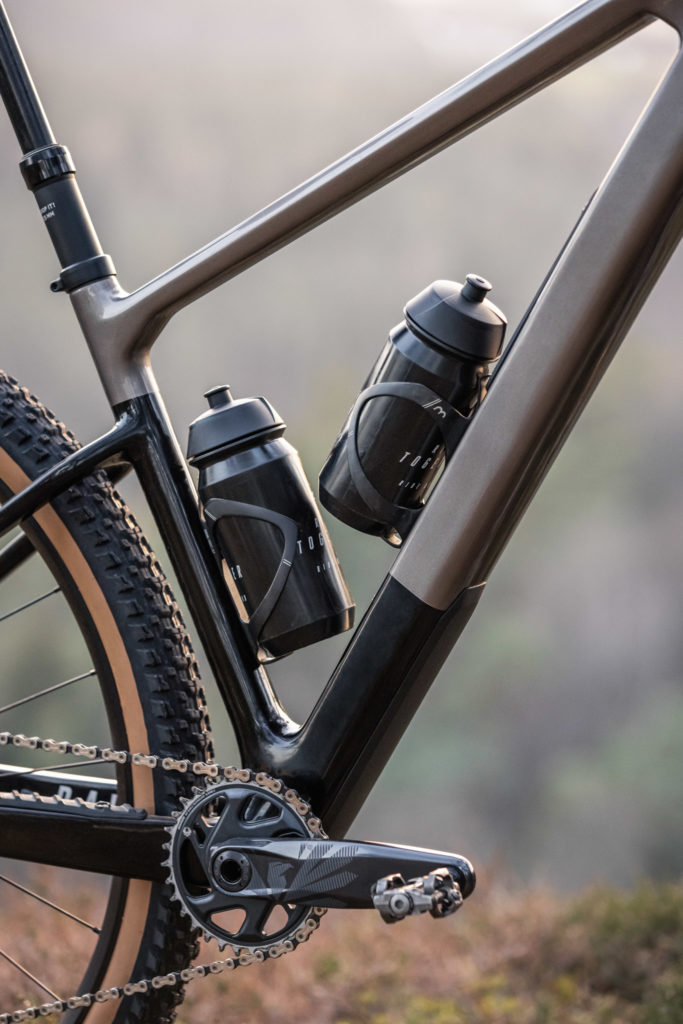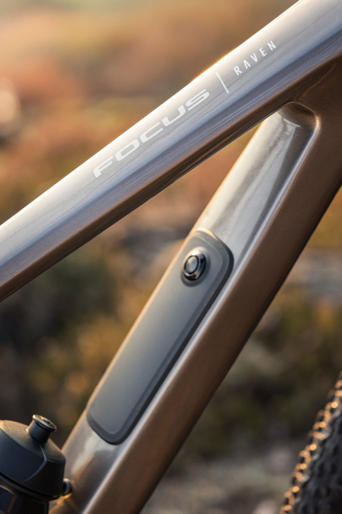 Sans surprise, tous les câbles passent en interne via la potence selon le concept C.I.S. (Cockpit Integrated System) de Focus, mais on repère une nouvelle potence justement, plus fine et discrète que celle qui équipe la plupart des vélos de la marque. Toutefois, l’une des caractéristiques les plus intéressantes du Raven se situe plus bas, sur le tube diagonal.