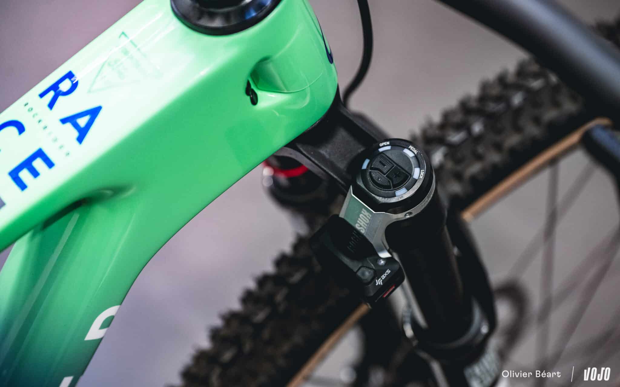La transmission n’est plus en Sram GX, mais en S1000 AXS. C’est une légère descente en gamme sur le papier, mais au niveau fonctionnement sur le terrain, on reste sur quelque chose de quasiment identique.