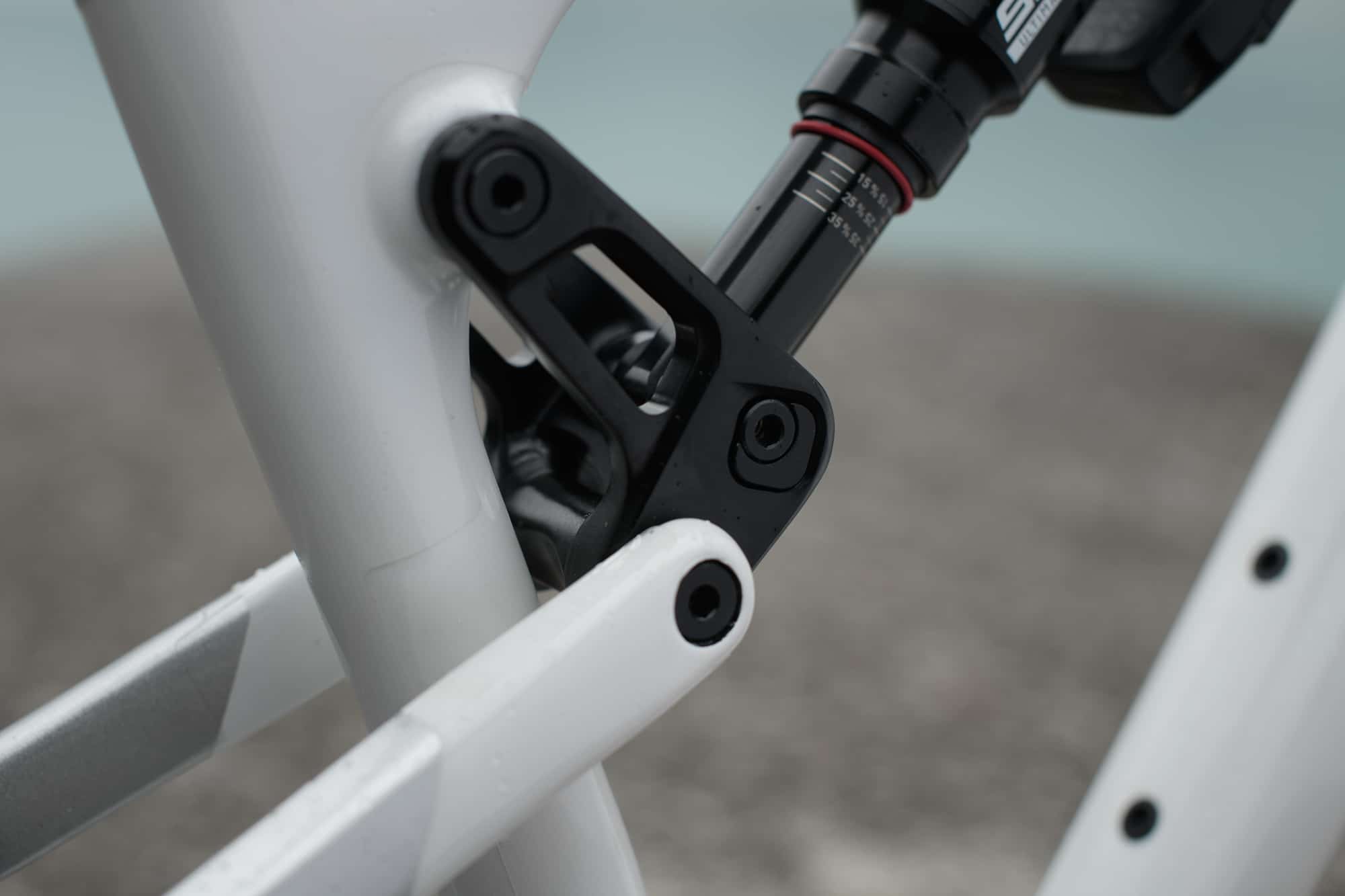 Si le cadre était déjà entièrement en carbone, un changement de taille est à noter du côté du triangle arrière. Rocky Mountain a abandonné le point de pivot traditionnel sur roulements, au profit d’un système de haubans flexibles, baptisé Smoothlink SL par la marque. « En renonçant au pivot traditionnel, non seulement on enlève du poids (350g), mais on améliore aussi la rigidité du triangle arrière », explique la marque. Aucune version en aluminium ne figure au catalogue.