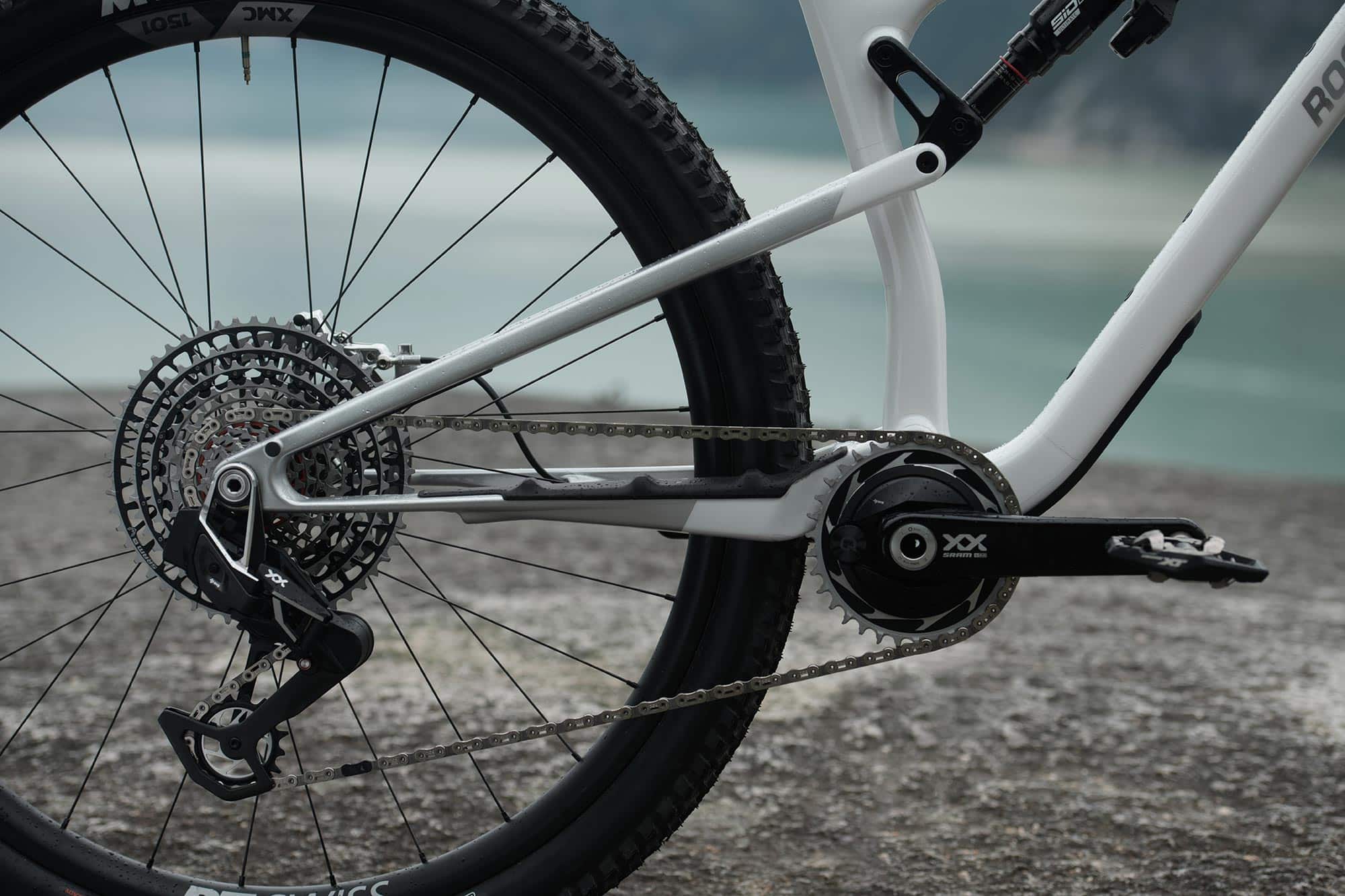 Si le cadre était déjà entièrement en carbone, un changement de taille est à noter du côté du triangle arrière. Rocky Mountain a abandonné le point de pivot traditionnel sur roulements, au profit d’un système de haubans flexibles, baptisé Smoothlink SL par la marque. « En renonçant au pivot traditionnel, non seulement on enlève du poids (350g), mais on améliore aussi la rigidité du triangle arrière », explique la marque. Aucune version en aluminium ne figure au catalogue.
