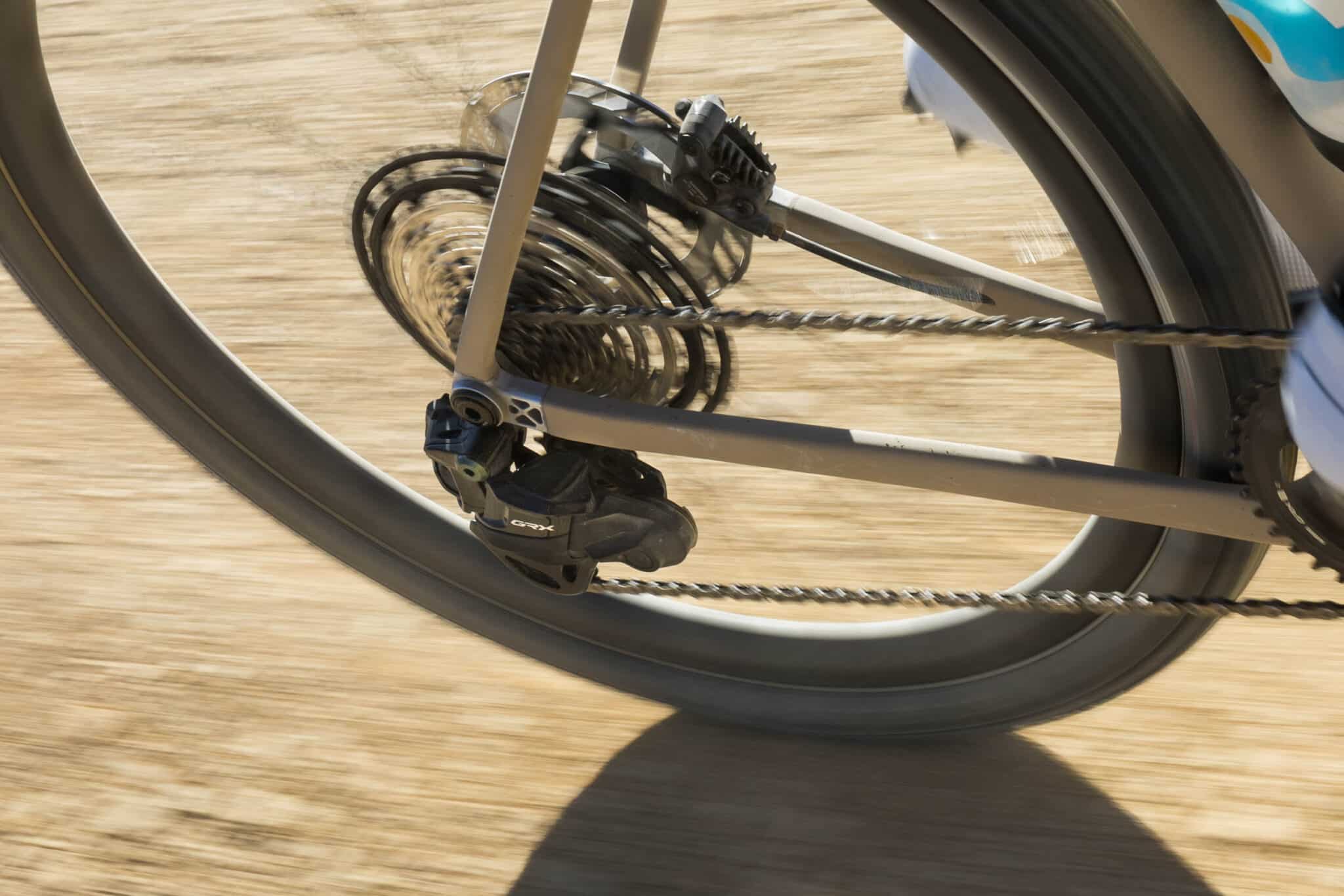 Le groupe de gravel Shimano GRX Di2 était jusqu’à présent une sorte d’hybride, avec des commandes au guidon sans fil, mais un dérailleur arrière (et avant si on roule en double) relié(s) par des câbles à une batterie centrale cachée dans le cadre. Désormais, avec l’arrivée du dérailleur arrière Shimano GRX Di2 RD-RX827, le groupe peut passer entièrement en sans fil.