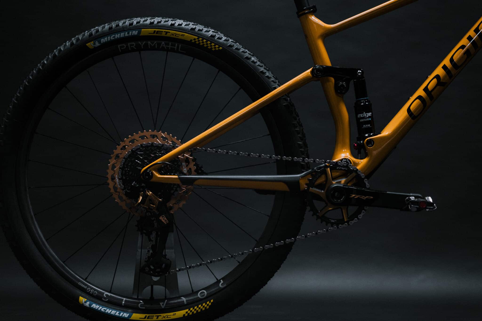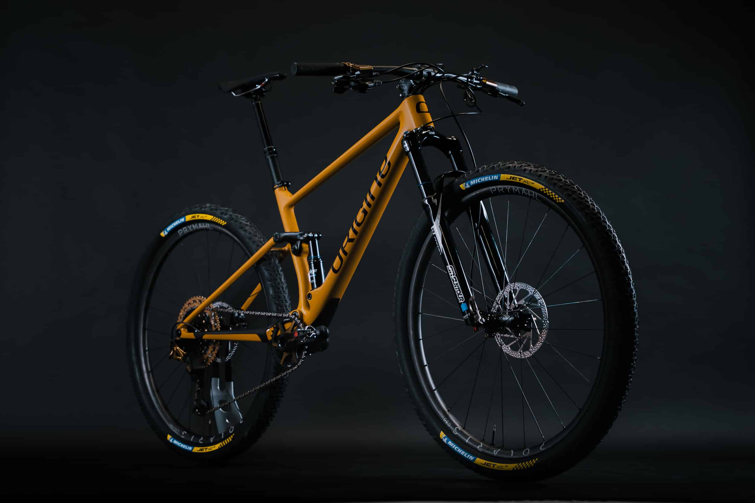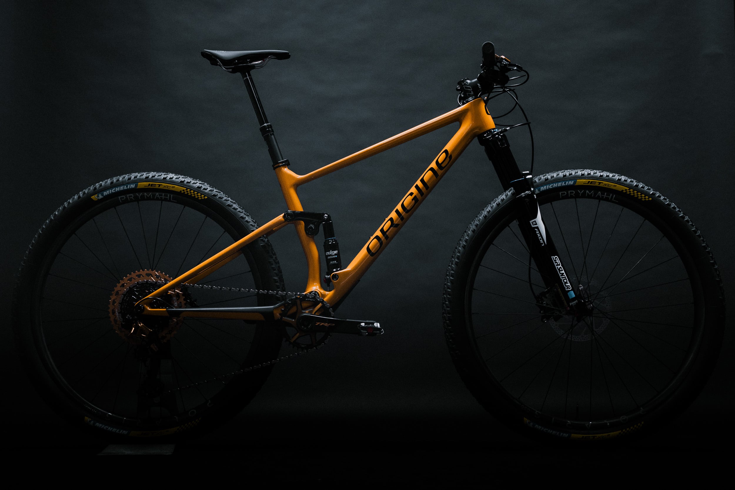 Au menu, on retrouve comme base le cadre dans sa couleur exclusive orange, inspirée par une teinte Porsche des années 60, avec les suspensions SR Suntour, également utilisées par le team.