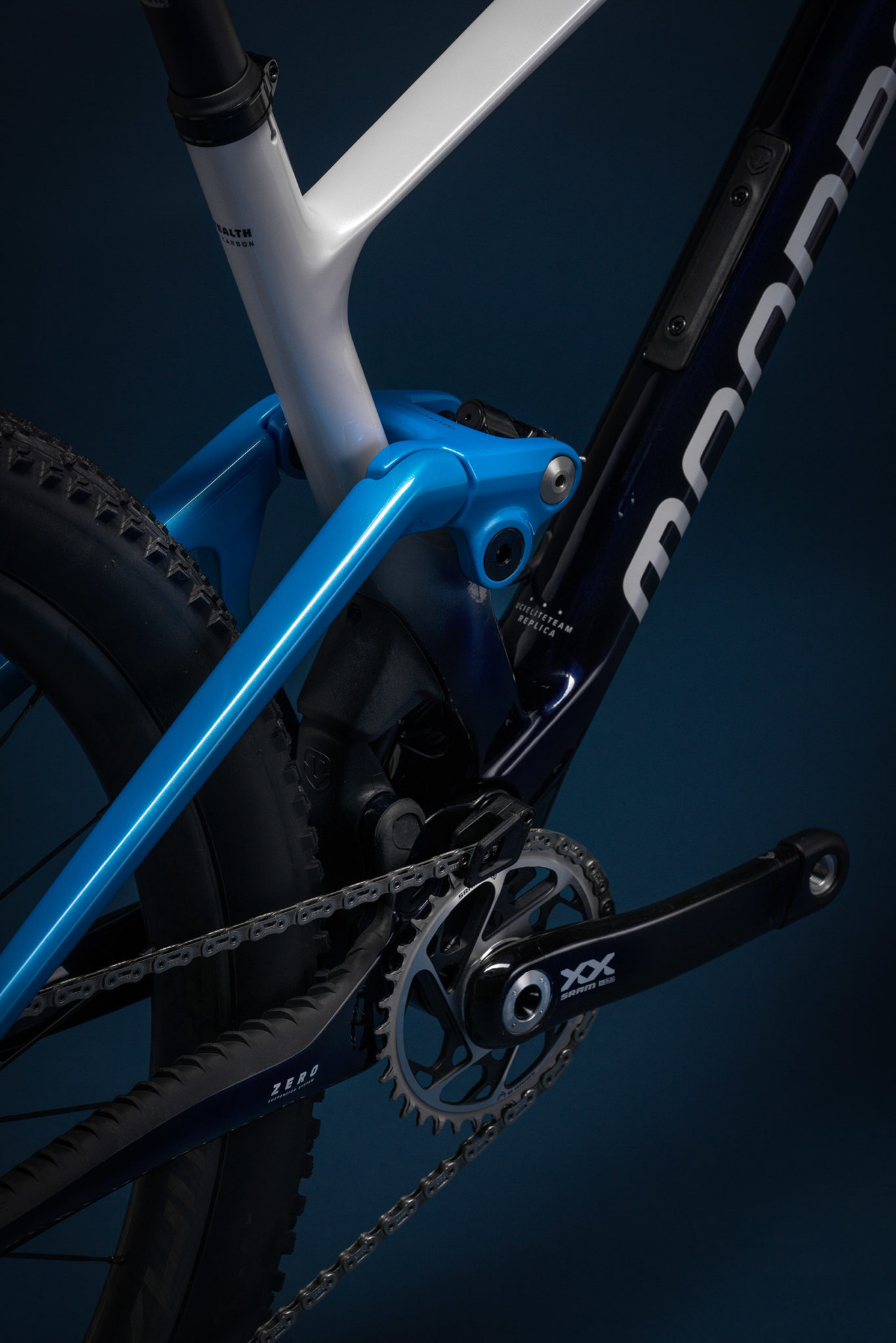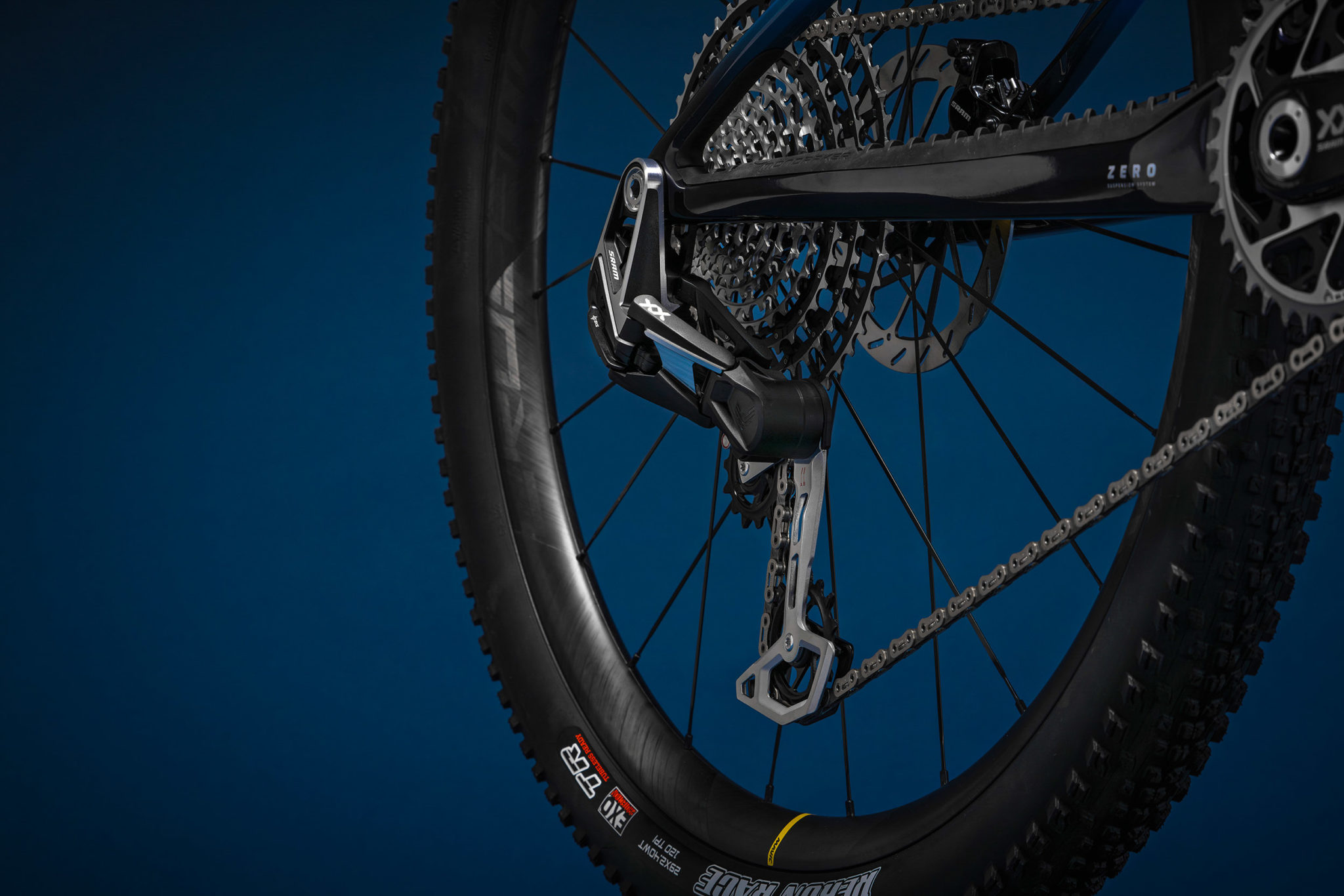 Si elle garde la base du concept Zero (pour zéro pompage, zéro kick back et zéro verrouillage au freinage) avec un système à point de pivot virtuel et un amortisseur flottant, ce dernier ne prend plus appui sur un basculeur mais directement sur le triangle arrière, au-dessus des bases.