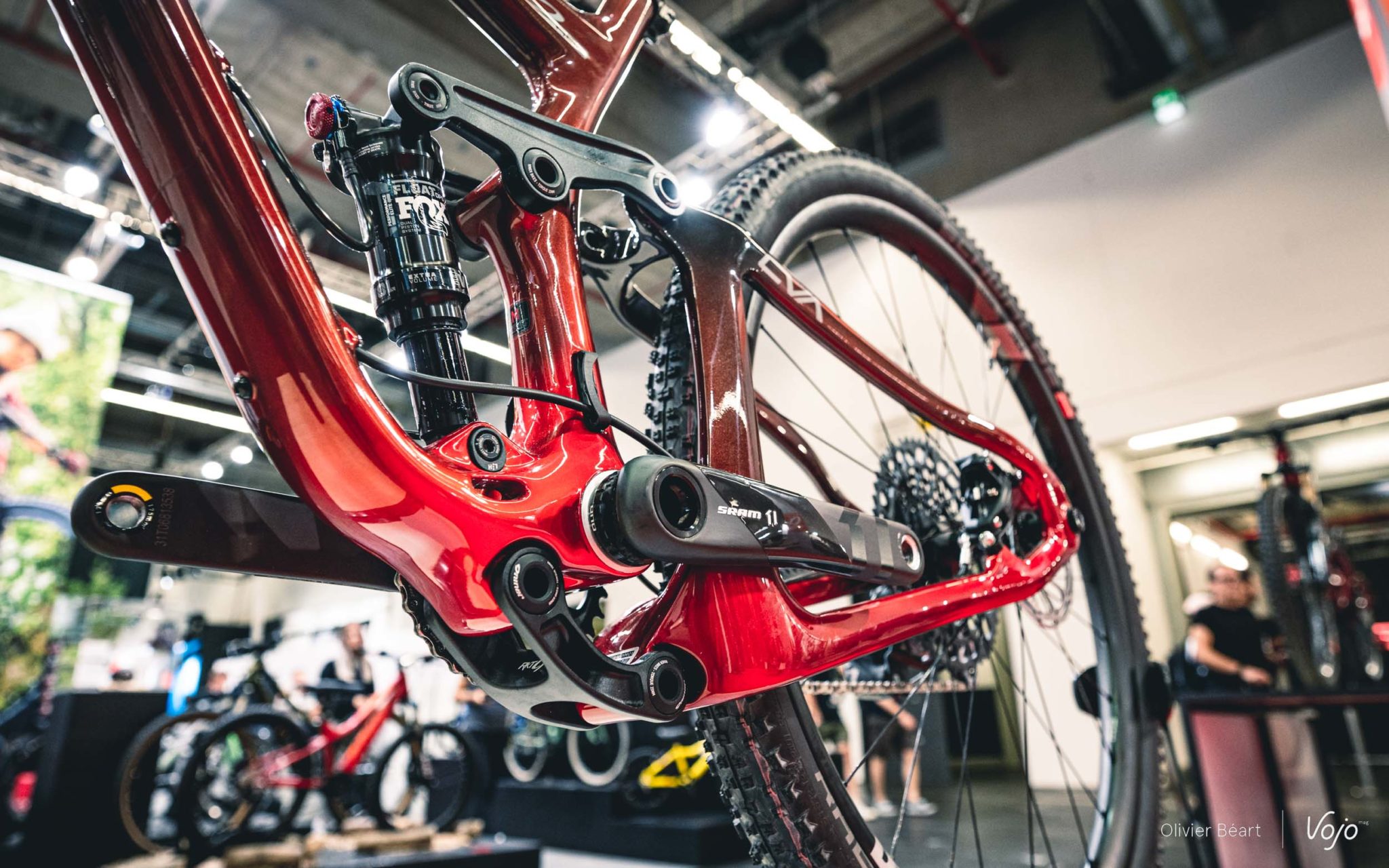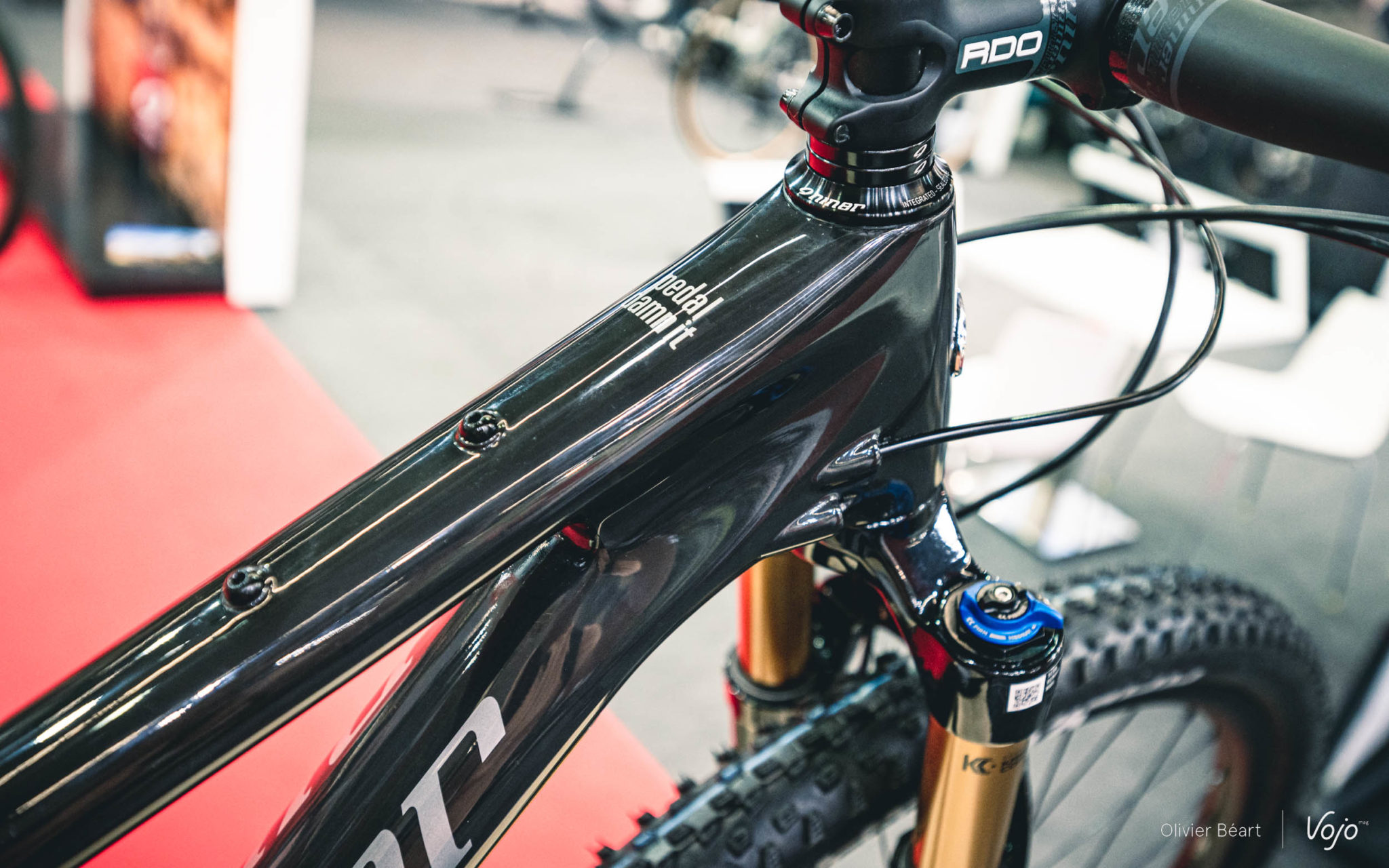 Côté pratique, on relève pêle-mêle : des passages internes entièrement guidés, un boîtier de pédalier au format BSA 73, un indicateur de sag sur la biellette, un tube de selle en 30,9 mm de diamètre (compatible avec de nombreuses tiges de selles télescopiques) ou encore des inserts sur le tube supérieur pour un petit rangement, potentiellement utile en cas d’utilisation en marathon et (ultra) longues distances.