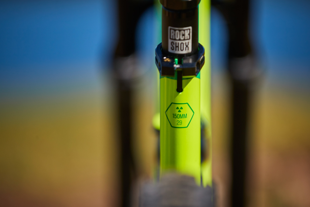 Avec les demandes de plus en plus pressantes des pilotes d’EWS d’avoir des machines plus stables et rapides, Nukeproof a reconsidéré ses choix en matière de géométrie et suit la tendance avec un tube supérieur allongé (et le reach aussi) sur les tailles L et XL, ainsi qu’une douille de direction un peu plus haute.