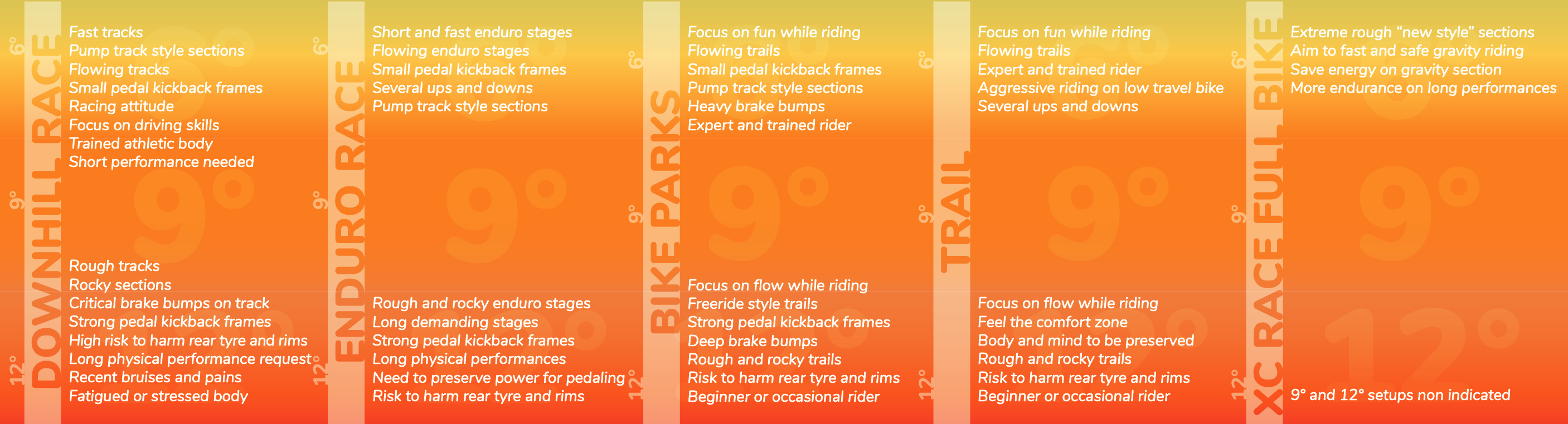 Sur son site, Dragoni évoque logiquement des applications en DH mais aussi en enduro. Dans les deux cas, l’idée est de donner la sensation de rouler sans chaîne sur une partie du débattement, plus ou moins importante selon le réglage choisi. Sans chaîne, pas de kickback donc moins de fatigue, plus de confort et plus de fluidité.