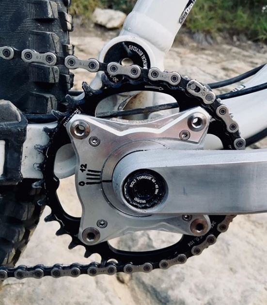 Le produit prend la forme d’une étoile de pédalier (disponible en version Race Face ou Ingrid) sur laquelle n’importe quel plateau au standard 104 BCD peut se fixer. Le système qui permet à l’extérieur de l’étoile de bouger par rapport à l’interface avec la manivelle n’est pas décrit, mais une demande de brevet est en court, on en saura donc plus dans quelques mois. On sait en revanche que le système est réglable sur 3 positions, avec 6°, 9° ou 12° de liberté pour le plateau, pour l’ajuster au terrain et à ses attentes.