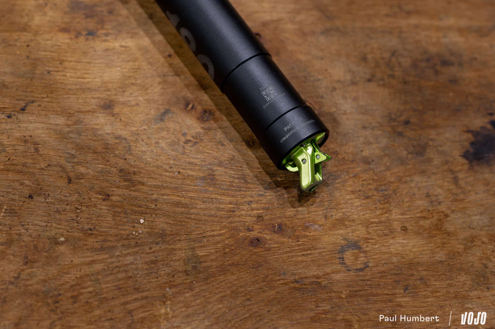 La Dropper Post V3 reçoit ainsi une toute nouvelle cartouche hydraulique qui doit améliorer les performances sur plusieurs points. En termes de fonctionnement, OneUp annonce que la mise en mouvement est nettement plus aisée qu’avant et que l’effort demandé au niveau de la manette lorsqu’on est assis sur la selle (autrement dit pour descendre la tige) a été réduit de 75 %, soit presque divisé par deux.