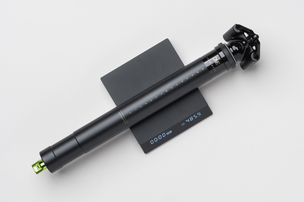 Côté poids, cela va de 304 g dans la configuration la plus légère (90 mm et diamètre 27,2 mm, c’est environ 50 g de moins qu’une Fox Transfer SL en 75 mm) à 765 g dans la plus lourde (240 mm et 34,9 mm). Pour vous donner un point de comparaison avec des dimensions plus courantes, cette OneUp Dropper Post V3 est annoncée à 480 g en 180 mm et 31,6 mm ou 415 g en 150 mm et 30,9 mm.