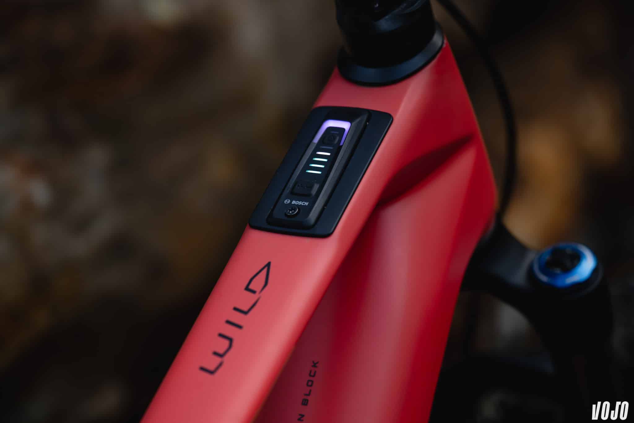 Côté assistance, le Wild reçoit donc la dernière génération du moteur allemand, 100 g plus léger que son prédécesseur et avec de nouvelles fonctionnalités qu’on vous détaillait dans notre article dédié : Test nouveauté | Moteur Bosch Performance CX 2025 : gros dur au coeur tendre. En revanche, il ne profite pas de la nouvelle batterie PowerTube 800 : trop épaisse, elle ne passait pas dans le tube diagonal. Le Wild conserve donc de série la PowerTube 750 Wh qui l’alimente depuis ses débuts, mais Orbea donne toutefois en option la possibilité de passer sur la nouvelle PowerTube 600, en y ajoutant éventuellement le Range extender de 250 Wh, pour gagner du poids (1,4 kg de moins que la 750 Wh).