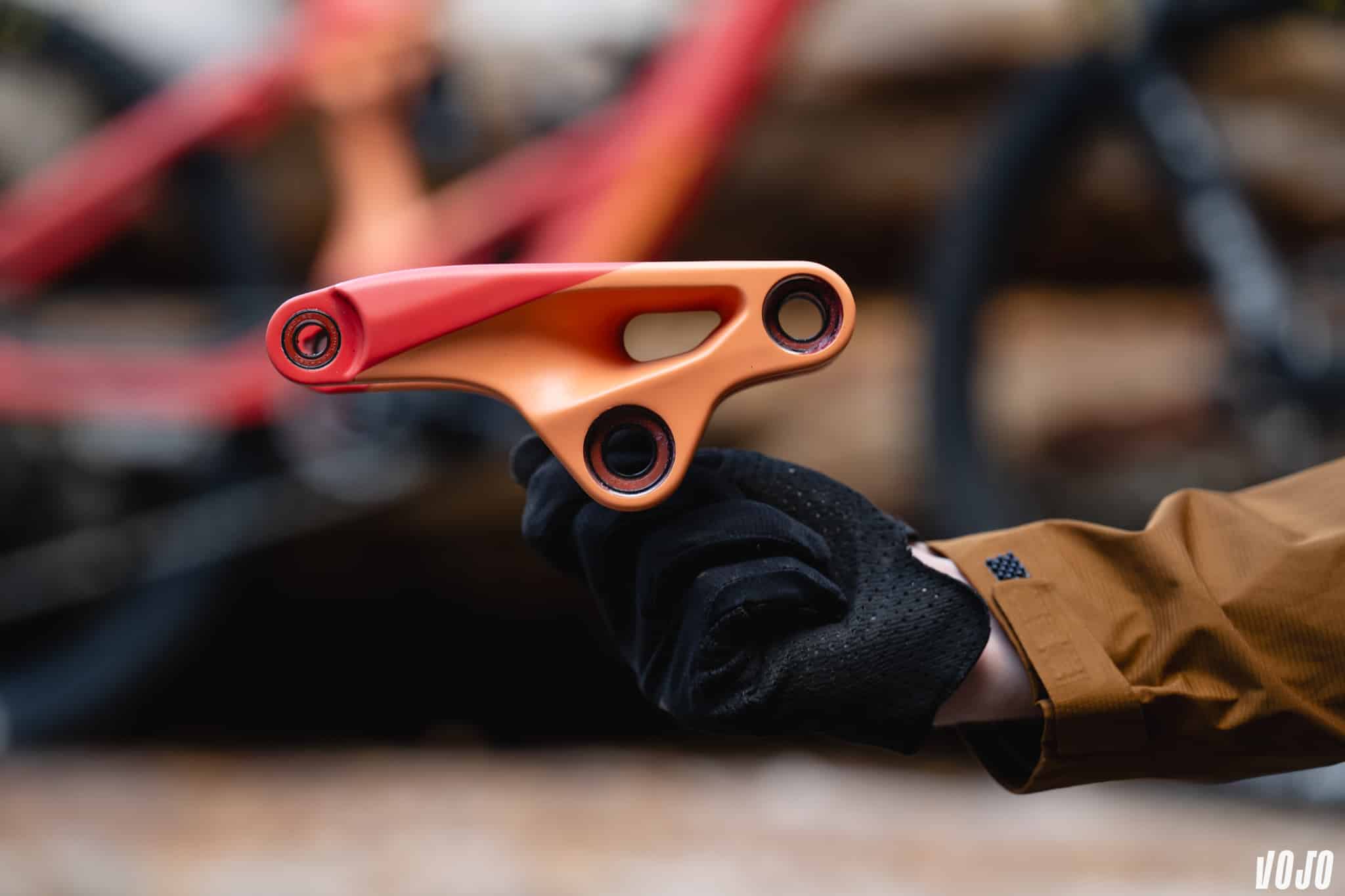 Enfin, la marque a décidé de rendre le Wild officiellement compatible avec un montage mulet (29″ devant et 27,5″ derrière) en dessinant une biellette spécifique qui permet de conserver la géométrie du montage d’origine en 29″. Les « grandes roues » restent aux yeux d’Orbea la meilleure configuration pour un e-bike, grâce à leur meilleure adhérence en montée notamment, mais elle admet que le mulet peut avoir du sens pour celles et ceux qui cherchent un maximum d’agilité en descente. Attention, cette « conversion » est déconseillée sur les précédentes générations de Wild, la faute à un problème de place au niveau des bases et du précédent moteur Bosch Performance CX.