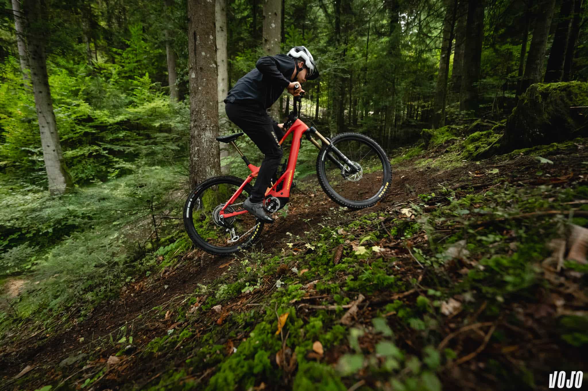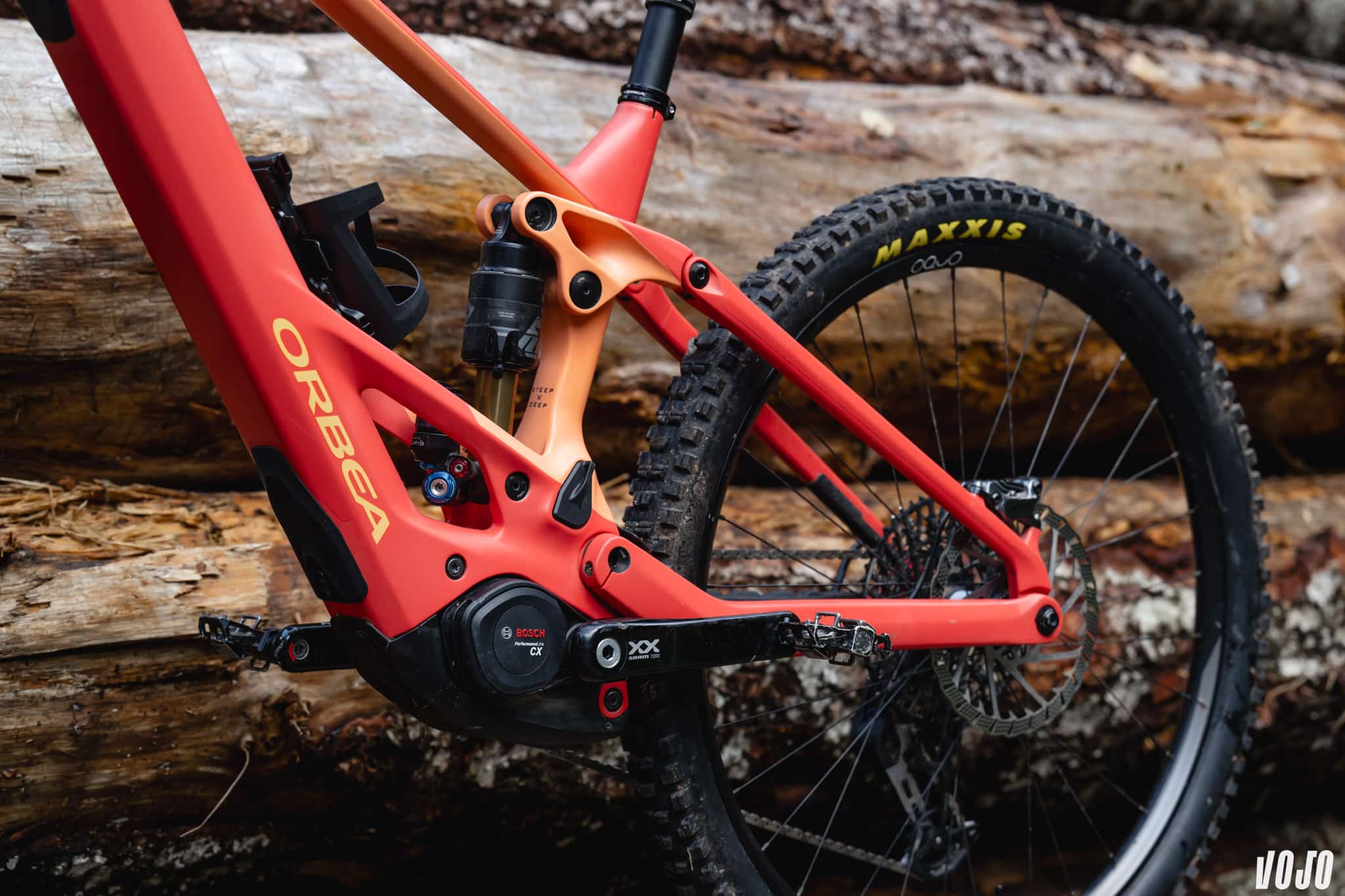 On est monté à son bord juste après avoir essayé le nouveau Santa Cruz Vala et le positionnement des vélos est assez similaire, d’autant plus qu’on retrouve dans les deux cas le moteur Bosch Performance CX de dernière génération. Néanmoins, l’Orbea semble un ton au-dessus en montée avec sa roue de 29″ à l’arrière dans ce montage.