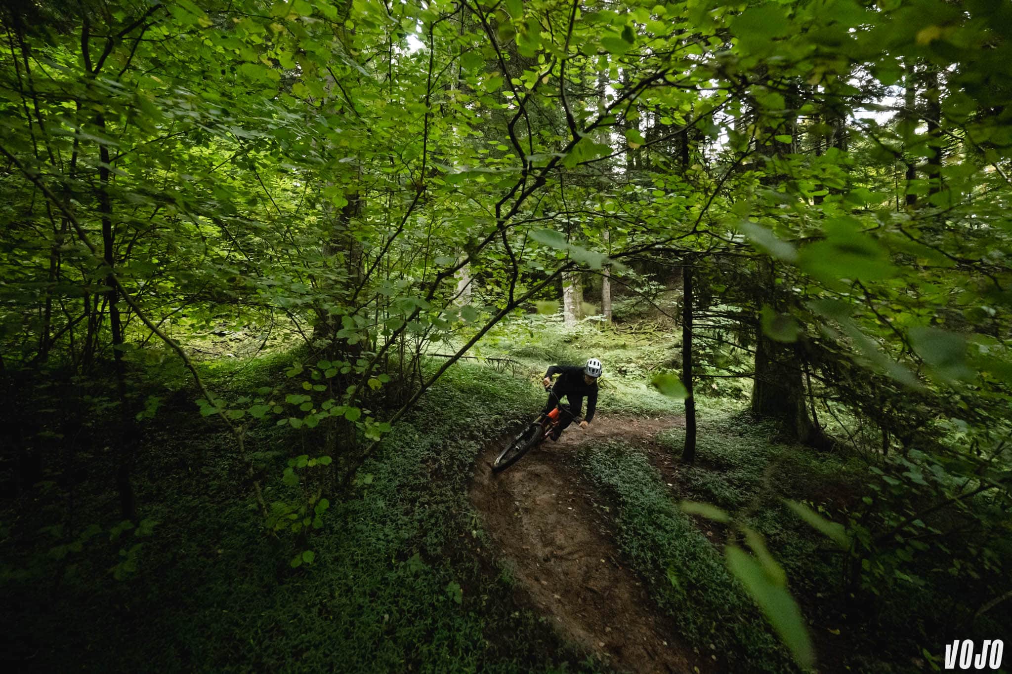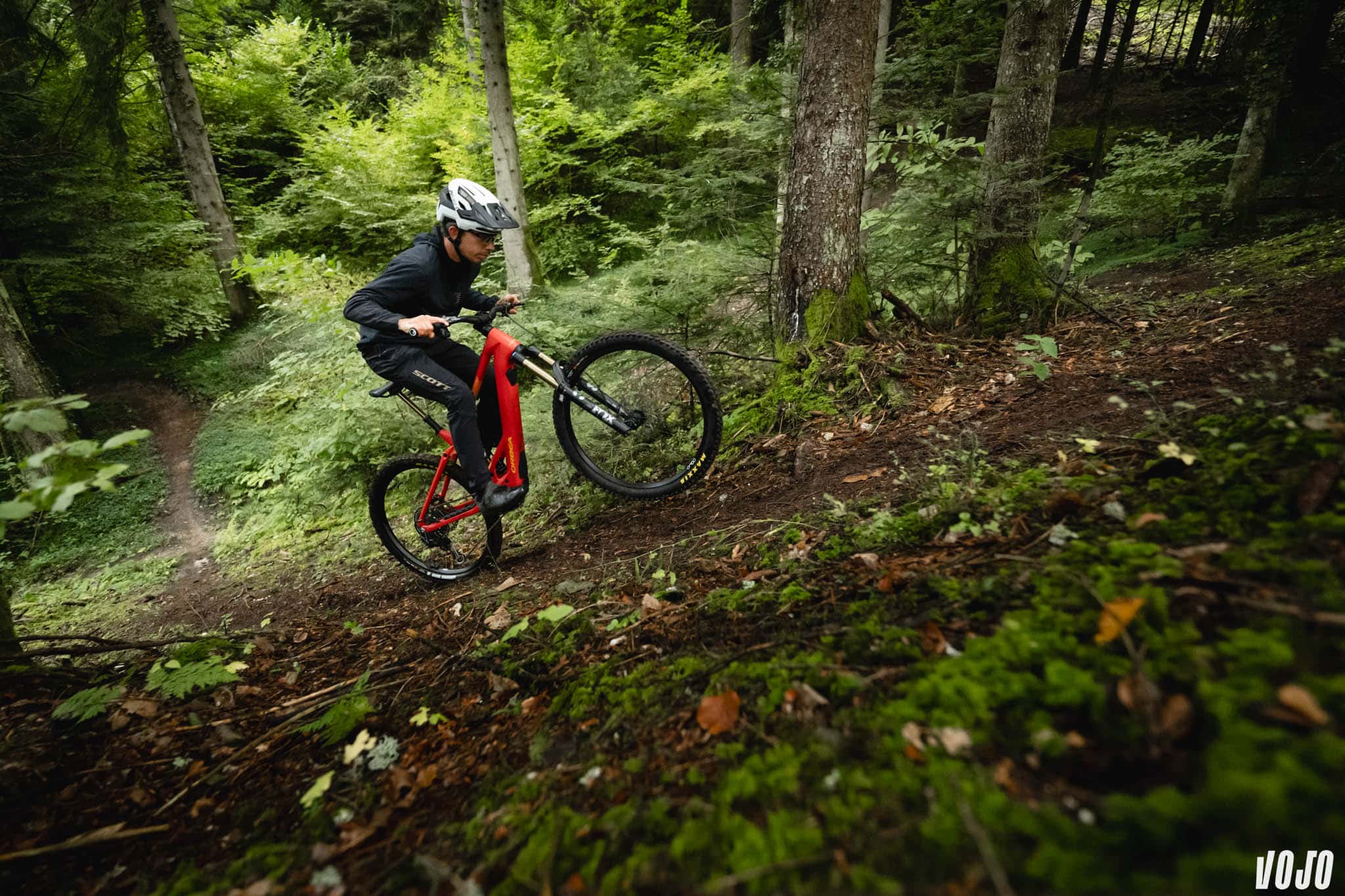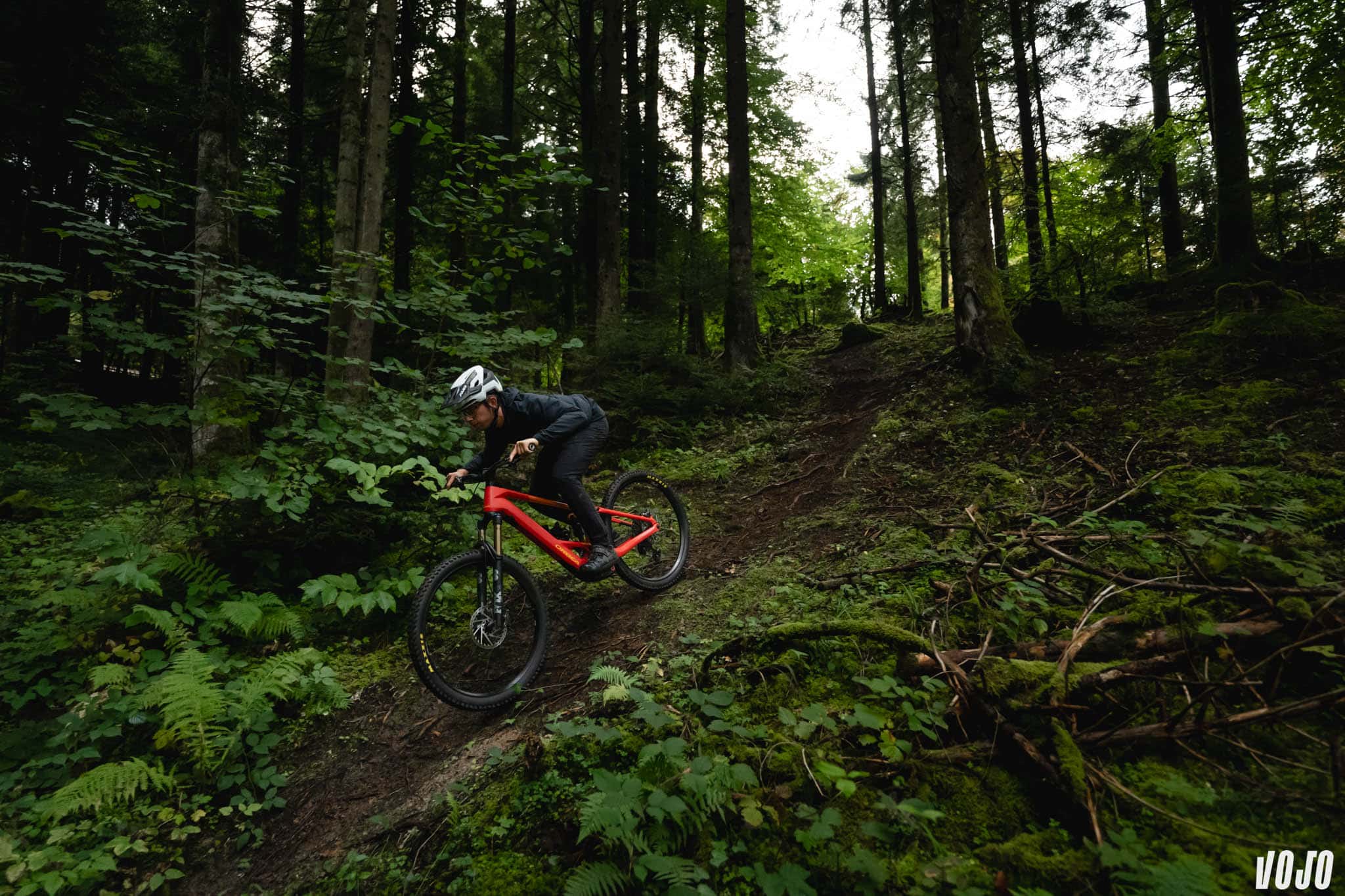 L’Orbea Wild est plutôt rigide et très précis. Le montage haut de gamme dont nous disposons offre un excellent grip et le vélo est très équilibré. Les suspensions, haut de gamme elles aussi, offrent une bonne filtration des petits chocs et une bonne plateforme au milieu du débattement pour aller bouger la machine.