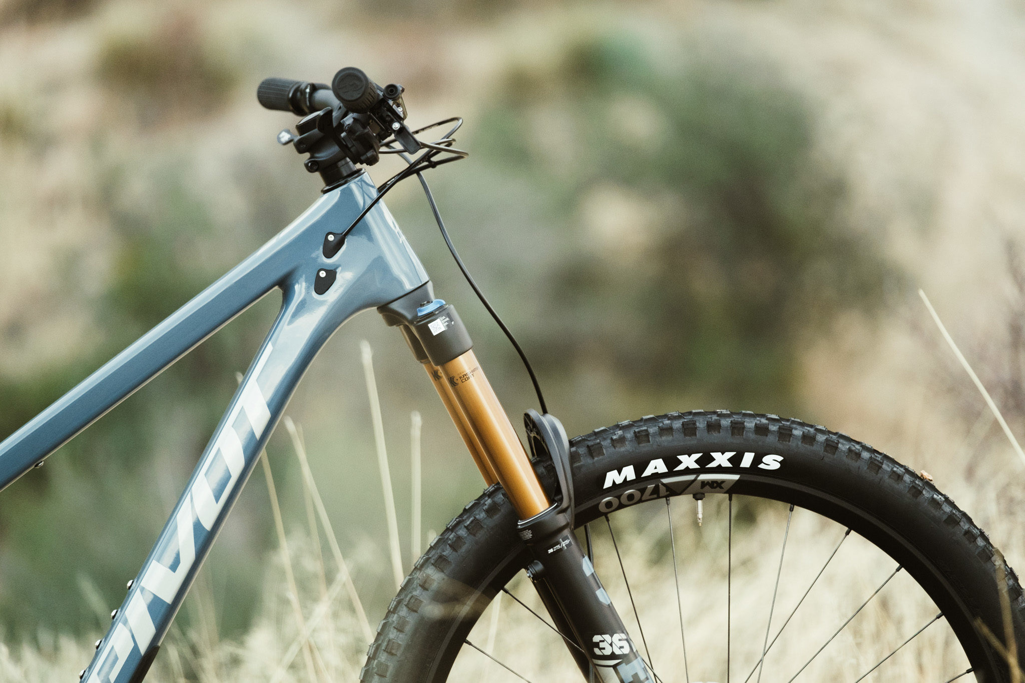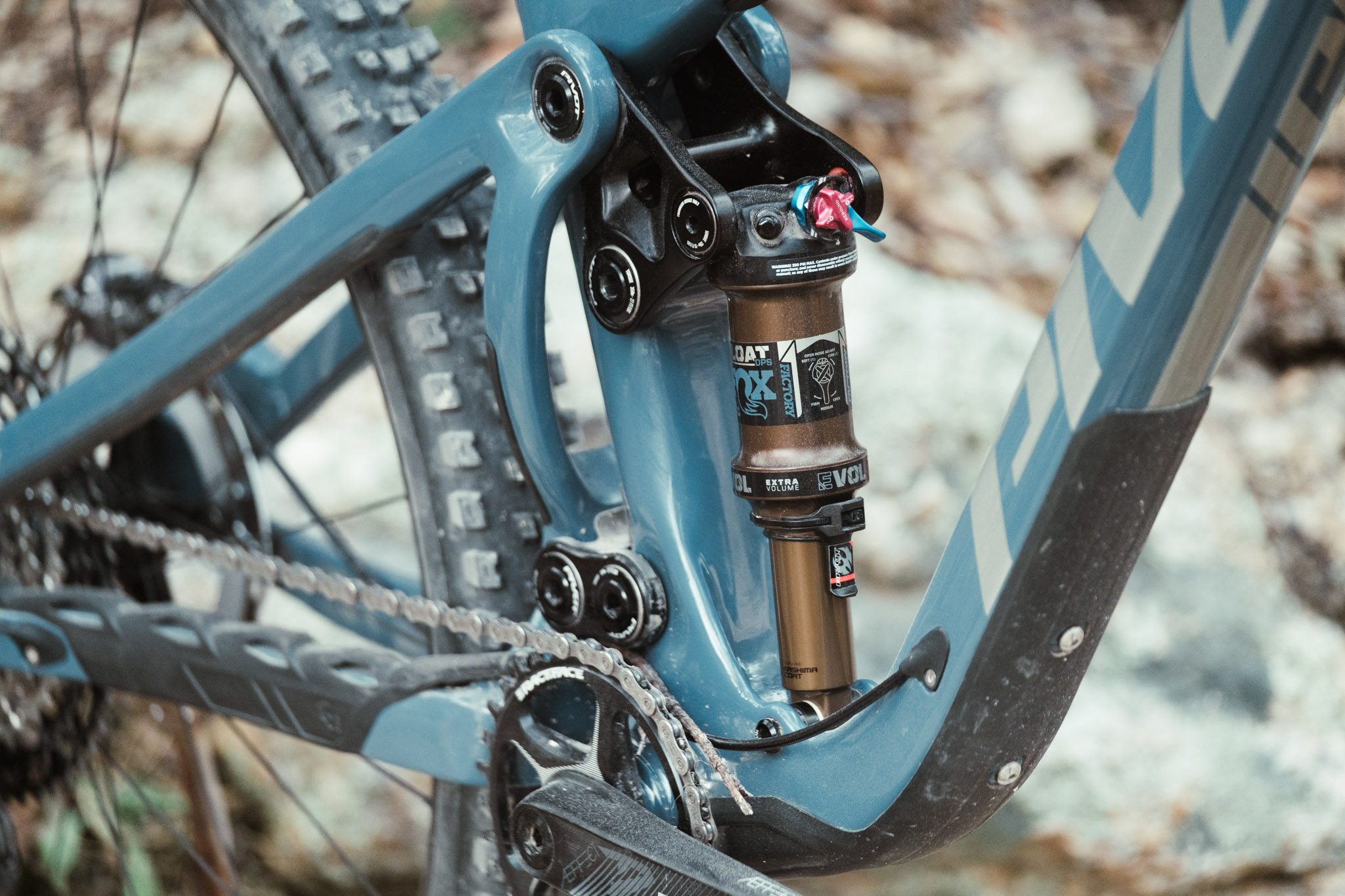 Les suspensions sont fournies uniquement par Fox, avec le petit amortisseur DPS à l’arrière et une 36 à l’avant. Selon le niveau de gamme, cette dernière est proposée en cartouche Grip ou Fit4. On peut regretter qu’il n’y ait pas de Grip2 au programme, car même si la cartouche Fit4 peut être intéressante pour une pratique polyvalente avec son blocage, ses performances en terme de maintien sont, selon notre expérience, insuffisantes pour un tel débattement.