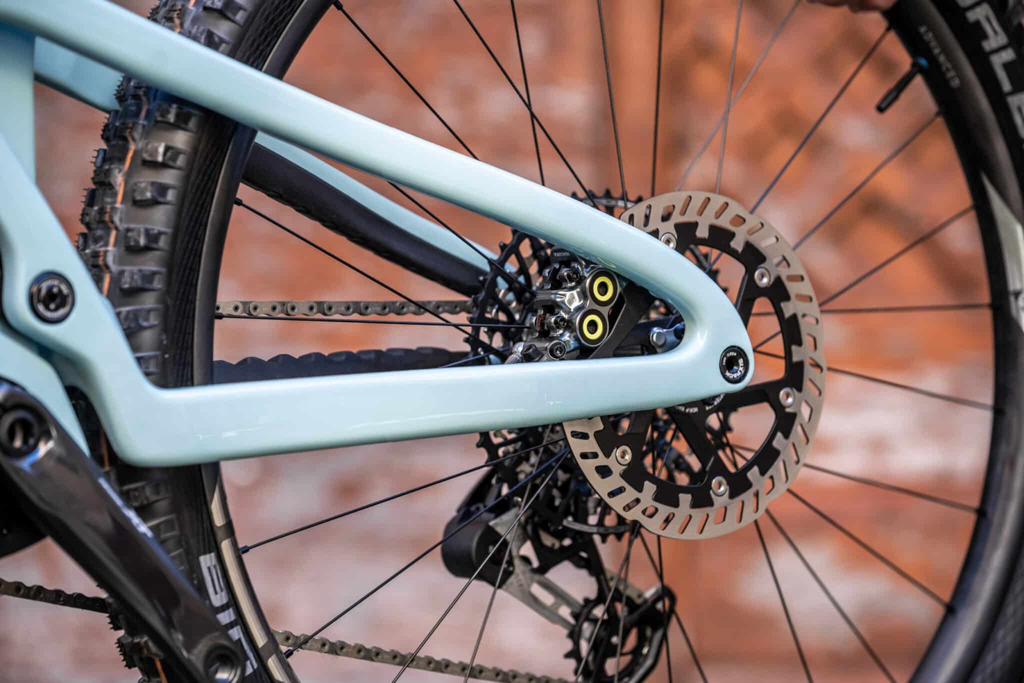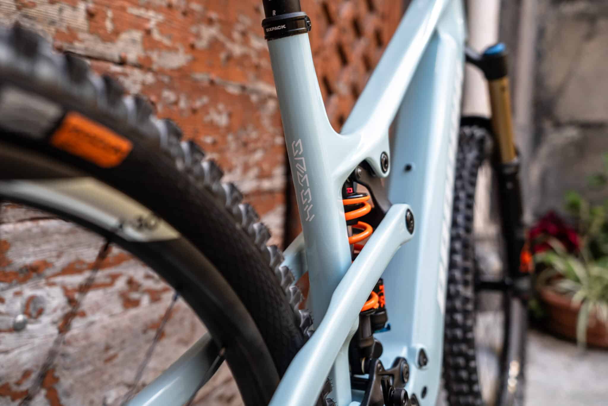 La suspension développe donc 150 mm de débattement avec l’architecture à point de pivot virtuel habituelle de la marque, la Pro10. Elle se distingue entre autres par un anti-squat (très) élevé sur le premier tiers du débattement, pour la simple et bonne raison que l’un des deux co-fondateurs n’aime pas avoir à utiliser le levier de blocage d’un amortisseur. A l’avant, le Sresh est conçu pour accueillir une fourche en 160 mm.