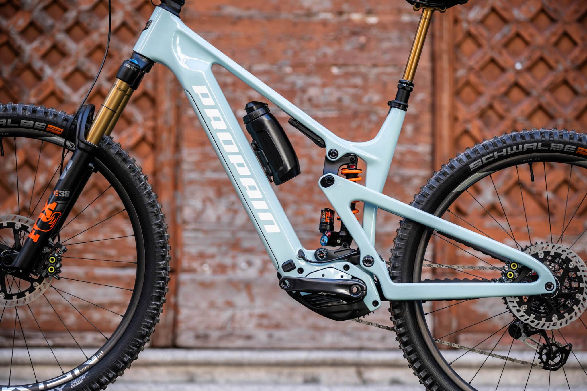 C’est par le reste de la plateforme que Propain se permet de parler d’e-bike léger : face à l’Ekano 2, un « monstre » de 170/180 mm de débattement disponible en aluminium ou en carbone, le Sresh avec son cadre uniquement en carbone et ses 150/160 mm de débattement fait effectivement figure de machine plus légère et polyvalente.