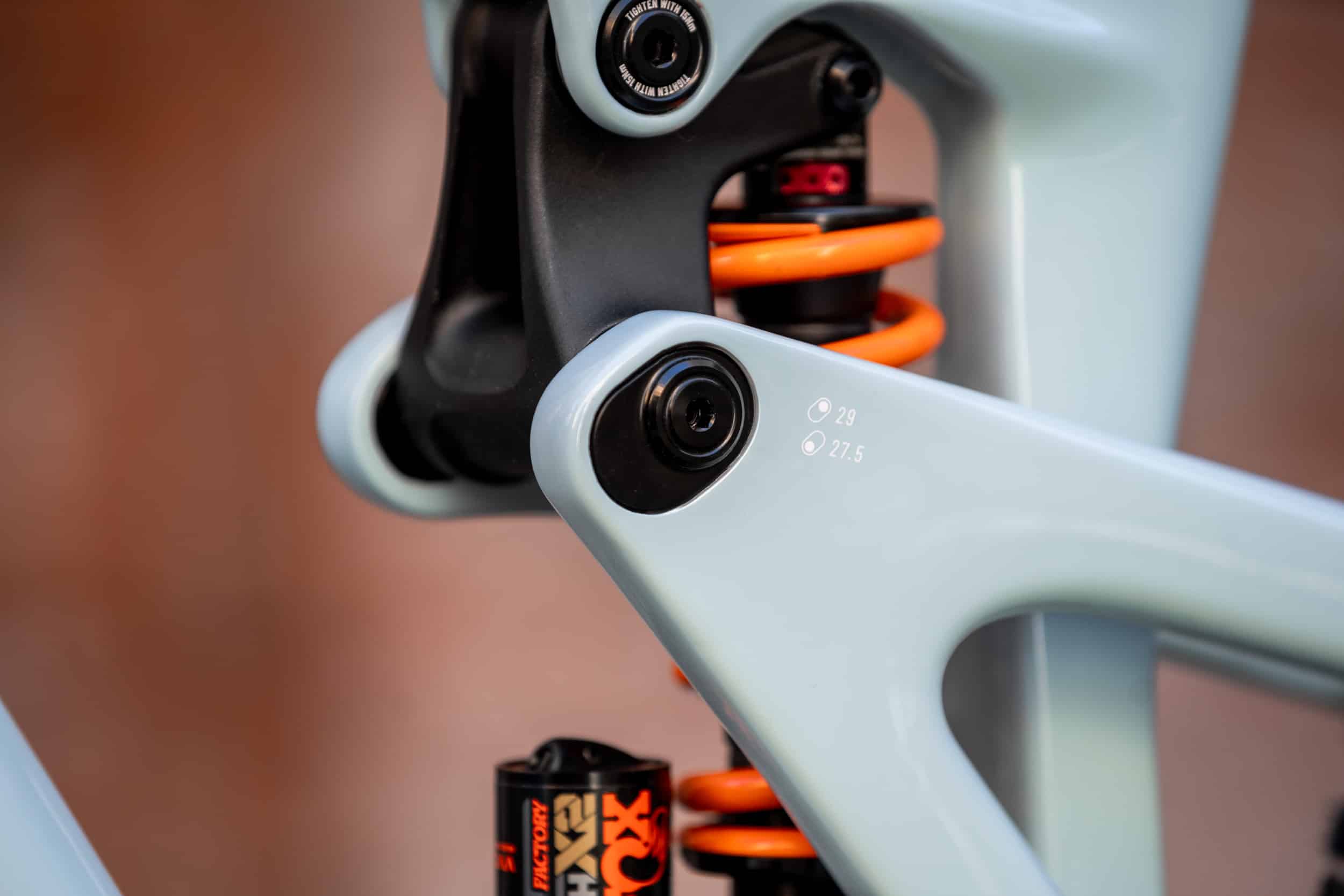 Côté standards et construction du cadre, on relève un support d’étrier de frein Postmount 200 mm, une patte de dérailleur UDH, des inserts sous le tube supérieur pour un support d’outils et des protections généreuses, aussi bien sur le cadre qu’autour des roulements où tous les joints sont doublés.