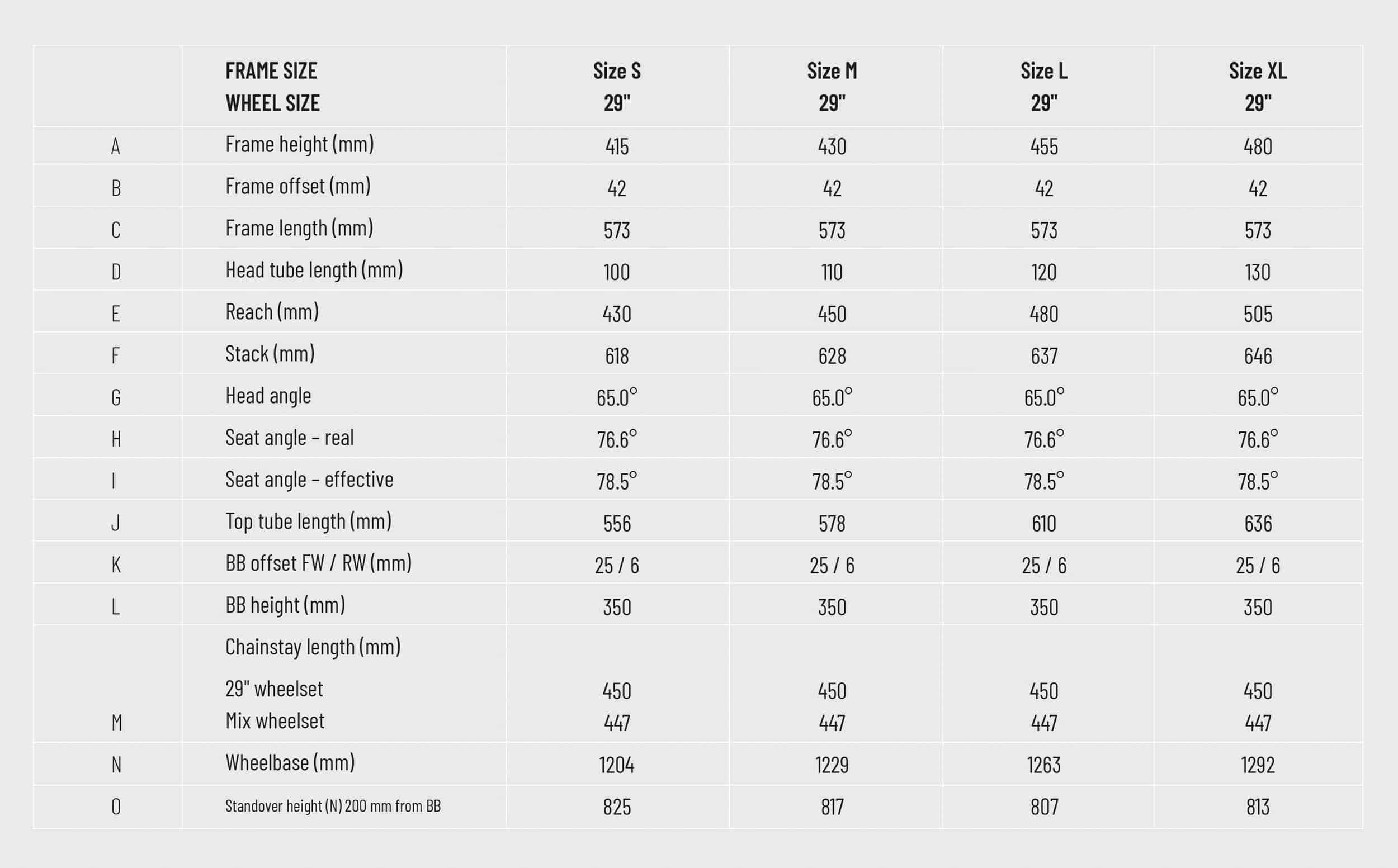 La géométrie est cohérente avec les ambitions du vélo : l’angle de direction de 65°, les bases de 450 mm en 29″ (ou 447 mm en 27,5″) et le reach de 450 mm en taille M devraient offrir un vélo relativement vif et facile à manier. On note également un angle de tube de selle de 78,5° afin d’être bien installé en montée.