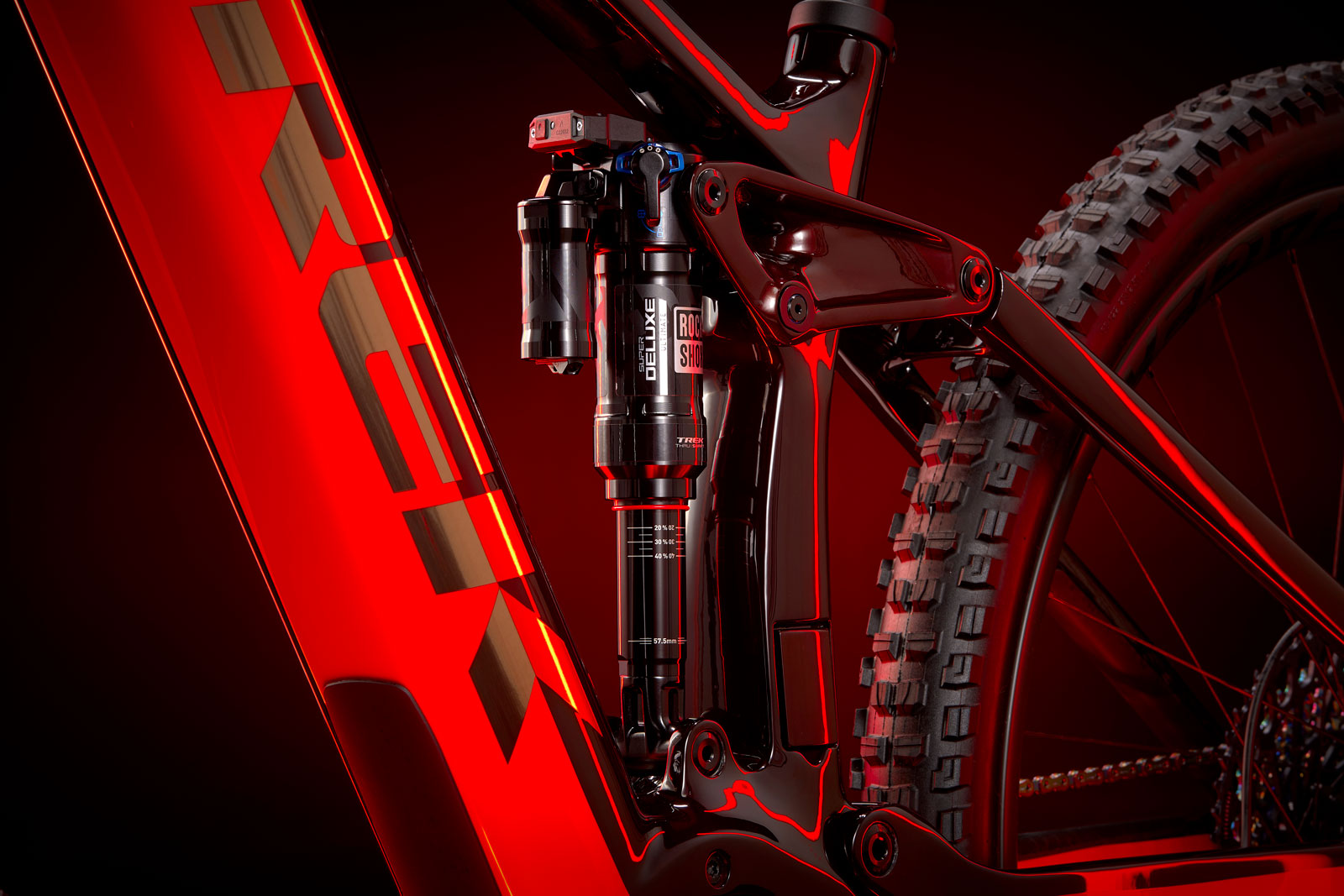 On peut définir soi-même la fourchette de pression « verte », si d’aventure les préconisations définies par Trek ne devaient pas vous convenir. Il est également utile de noter que le système AirWiz prend un peu de place dans la fourche et l’amortisseur, l’équivalent d’un token. Les possibilités de réglage sont donc un peu plus limitées que sur une suspension classique.