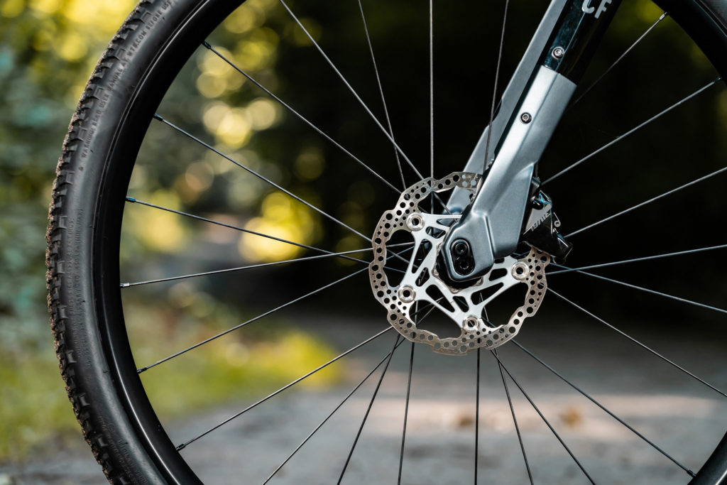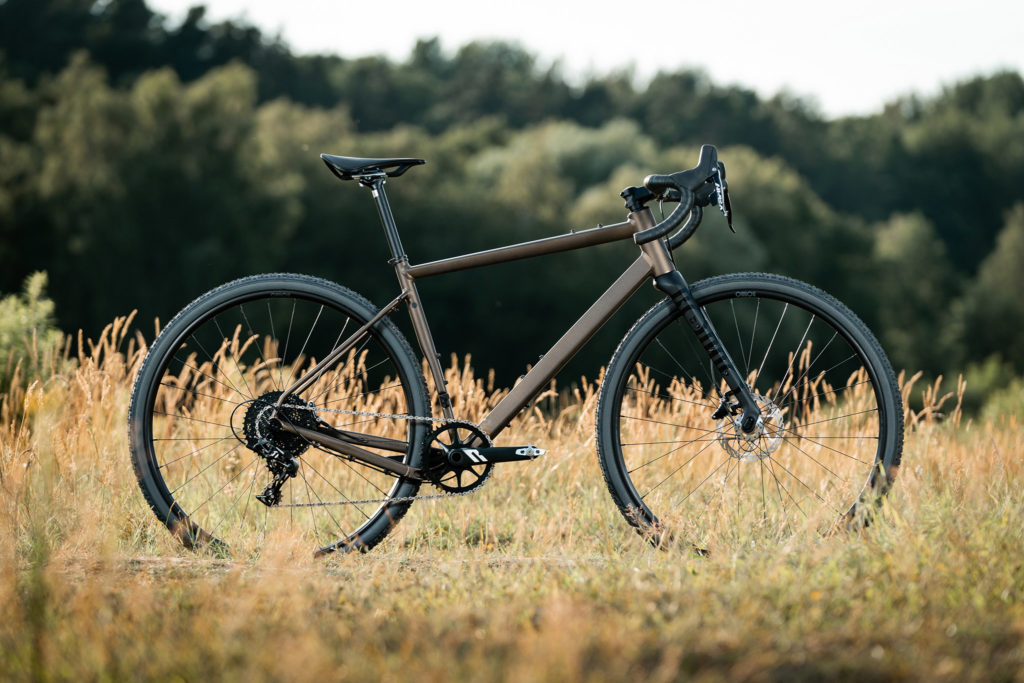 Côté pratique, le cadre accepte des pneus jusqu’à 700×47. On relève par ailleurs que tous les vélos sont équipés d’inserts sur la fourche et sur le triangle arrière, pour installer des sacoches et un porte-bagage. Les versions en aluminium et en acier profitent en plus d’inserts au sommet du tube supérieur pour un petit rangement supplémentaire. Les gaines passent en interne via la potence et le jeu de direction, ce qui est certes moins pratique pour l’entretien mais en revanche bien utile lorsqu’on souhaite monter une sacoche de cintre.
