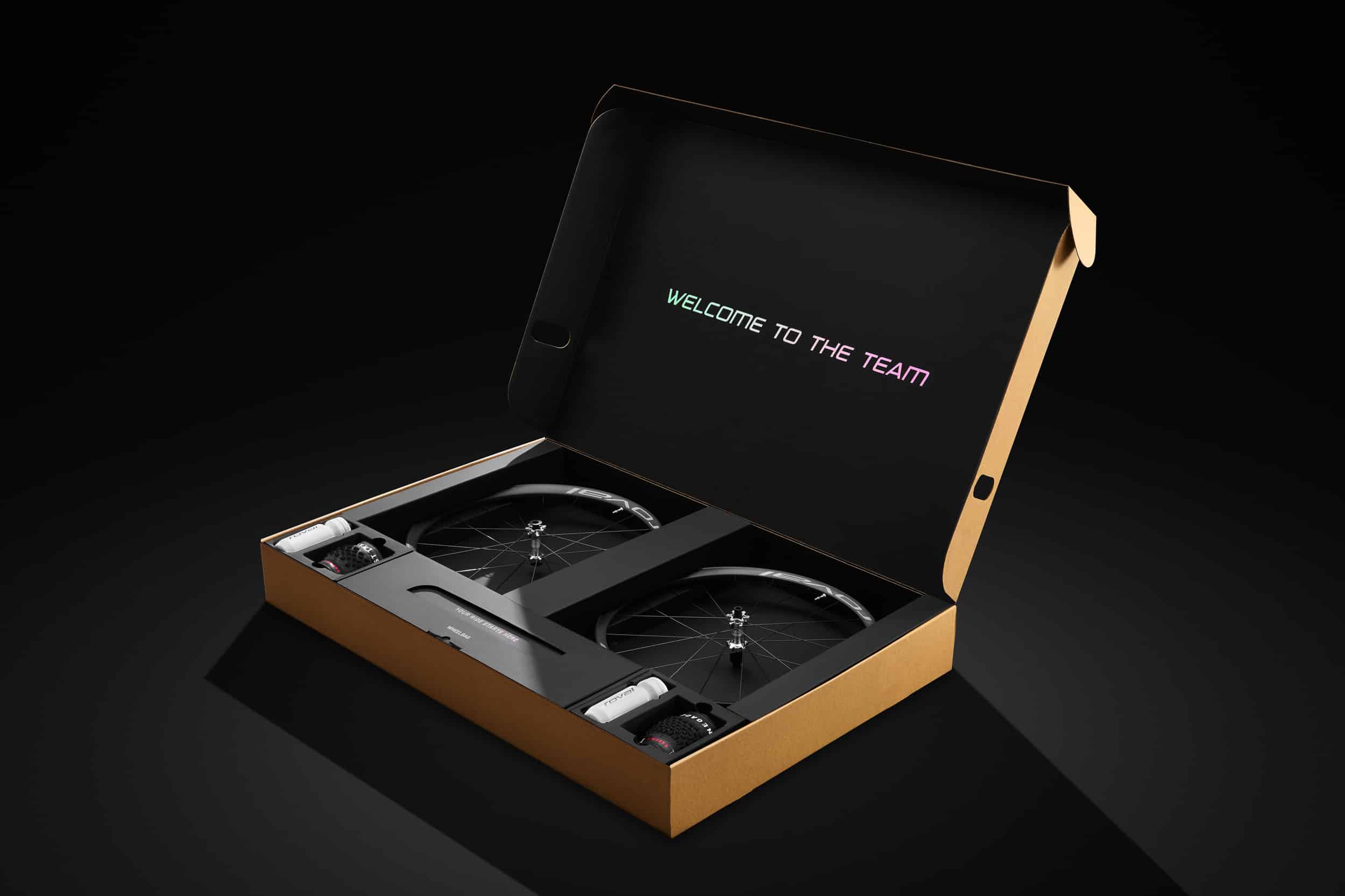 Vous voulez vraiment savoir le tarif ? Il est de 3000€. Mais à ce prix, vous avez un véritable coffret contenant non seulement les roues, mais aussi une paire de pneus S-Works, de la visserie en titane pour les disques, le préventif, les corps de roue libre XD et Microspline, un kit dynaplug, des housses de roue, des rayons supplémentaires, deux bidons et un petit paquet surprise du Team, contenant notamment des cartes dédicacées par les pilotes. Ouf !