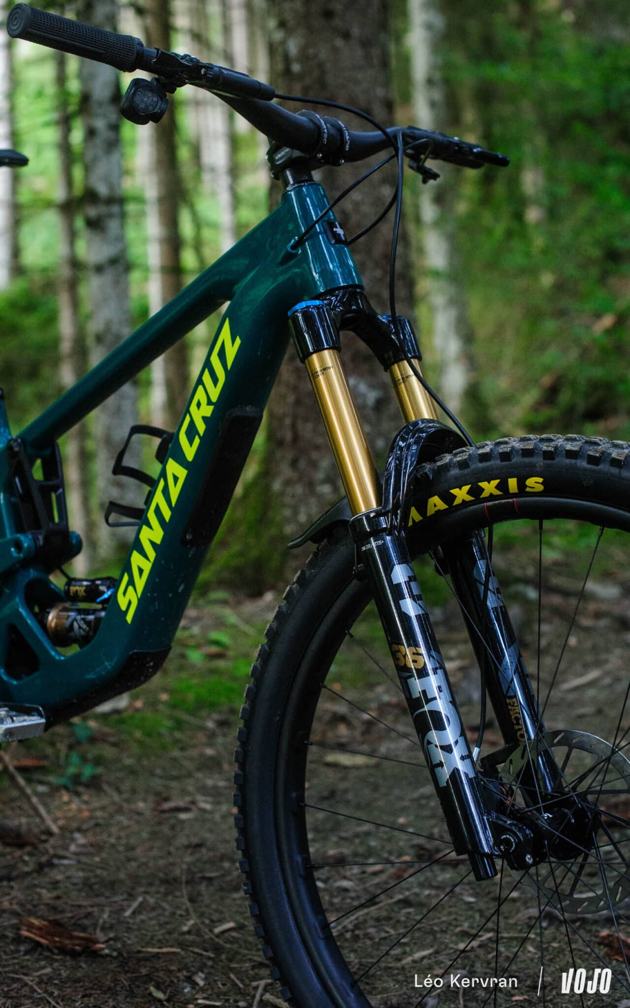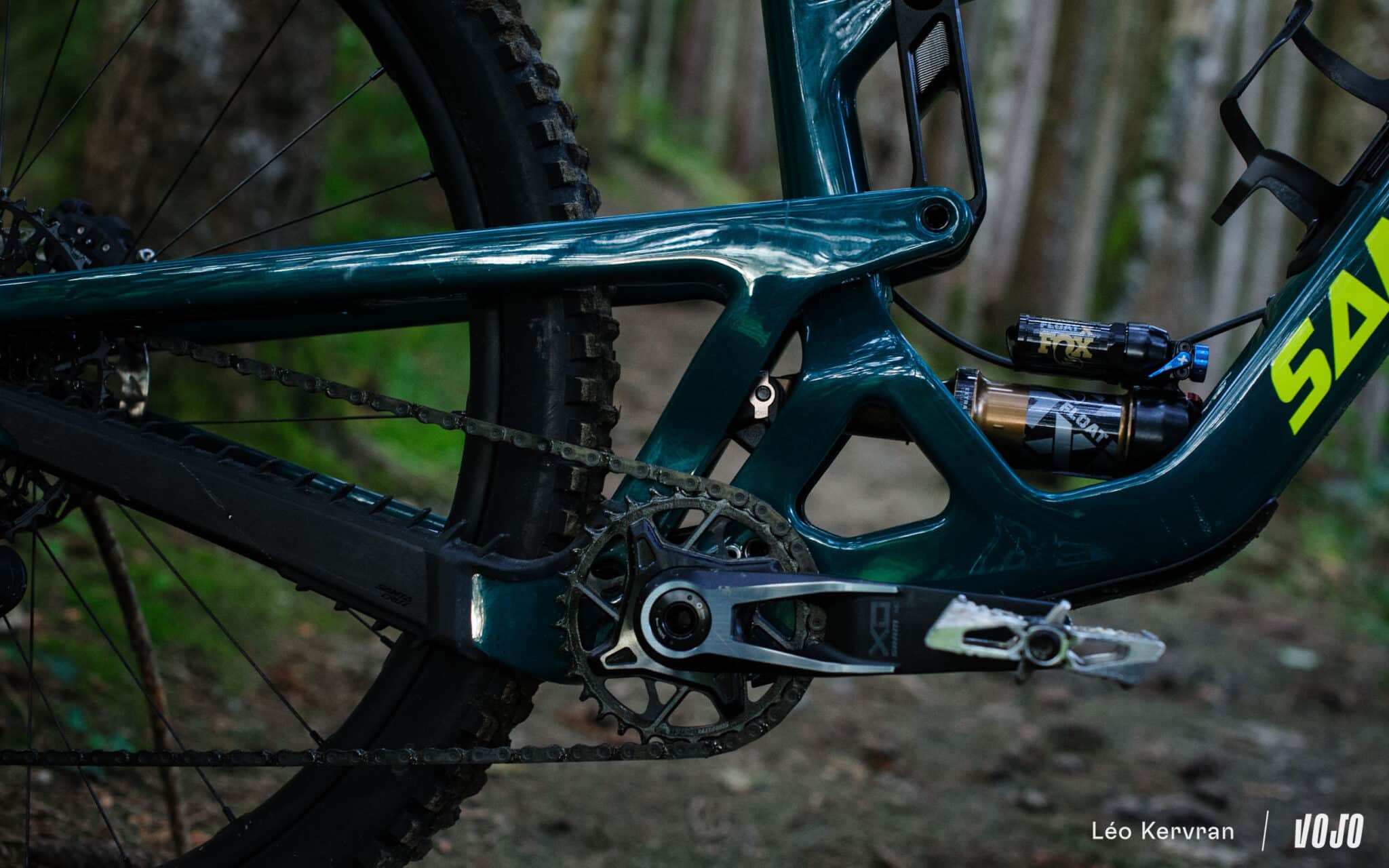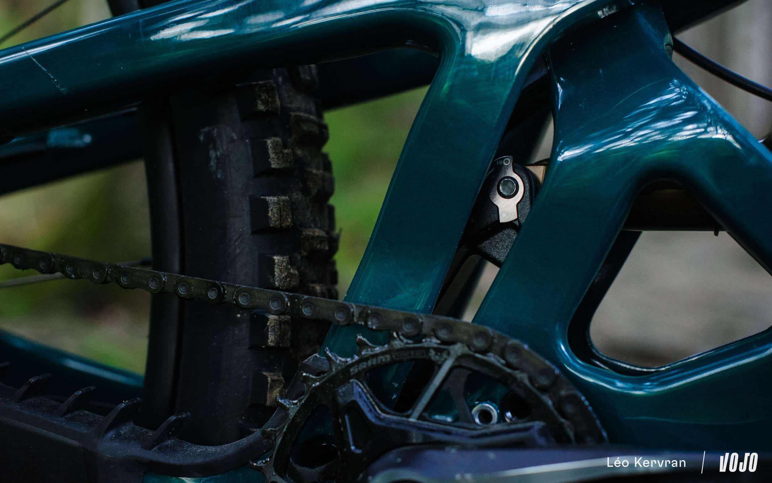 Pour Santa Cruz, dégager ainsi l’espace était nécessaire à son véritable objectif : réduire l’anti-squat du vélo, ce qui passe ici par un basculeur plus droit (et plus grand) que sur la génération précédente. Les valeurs restent supérieures à celles du nouveau Bronson, ce qui permet d’envisager un comportement plus dynamique au pédalage, mais on perd tout de même entre 10 et 15 % tout au long du débattement. Objectif annoncé, réduire le kick-back (intrinsèquement lié à l’anti-squat) lorsque la roue arrière rencontre un obstacle et proposer une suspension plus active au pédalage sur les terrains techniques.
