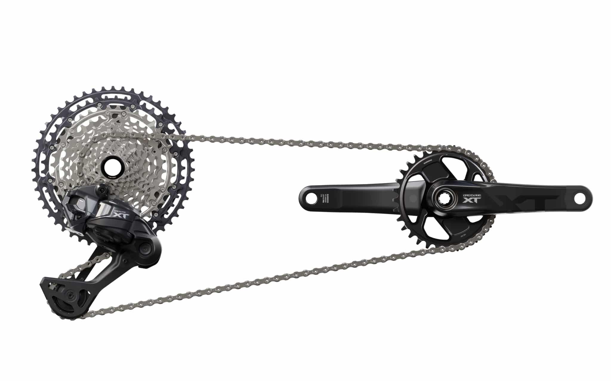 Avant de passer à la présentation de chaque pièce, soulignons que la compatibilité est totale entre tous les nouveaux composants Shimano Di2 et il sera donc possible de mixer XTR, XT et Deore sans souci, voire aussi avec des composants route/gravel sans fil. Le dessin des dents et plateaux n’ayant pas changé, il est également possible d’upgrader uniquement le dérailleur et le shifter sur un groupe Shimano 11 ou 12 vitesses de la précédente génération.
