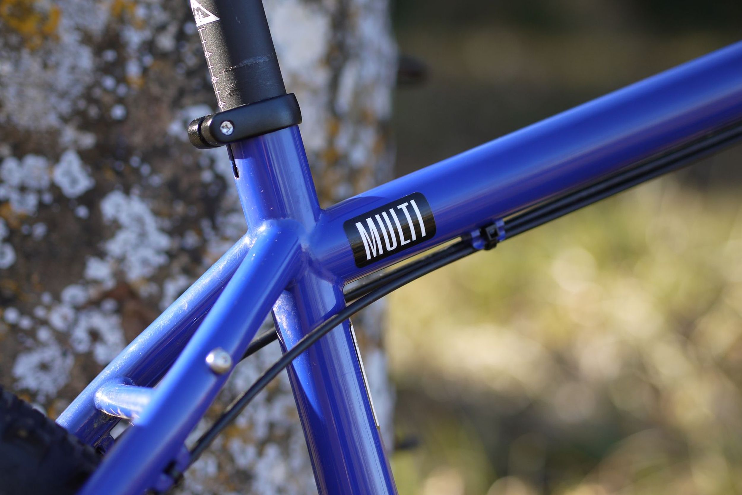Pour ce vélo, la marque a clairement misé sur la polyvalence avec des standards, ou des compatibilités, plus si courantes aujourd’hui : le Multi accepte encore un montage en double plateau (26-36, avec dérailleur avant Shimano à tirage latéral Side Swing uniquement), dispose de passages de gaines en interne et en externe pour tige de selle télescopique (diamètre 27,2 mm)…