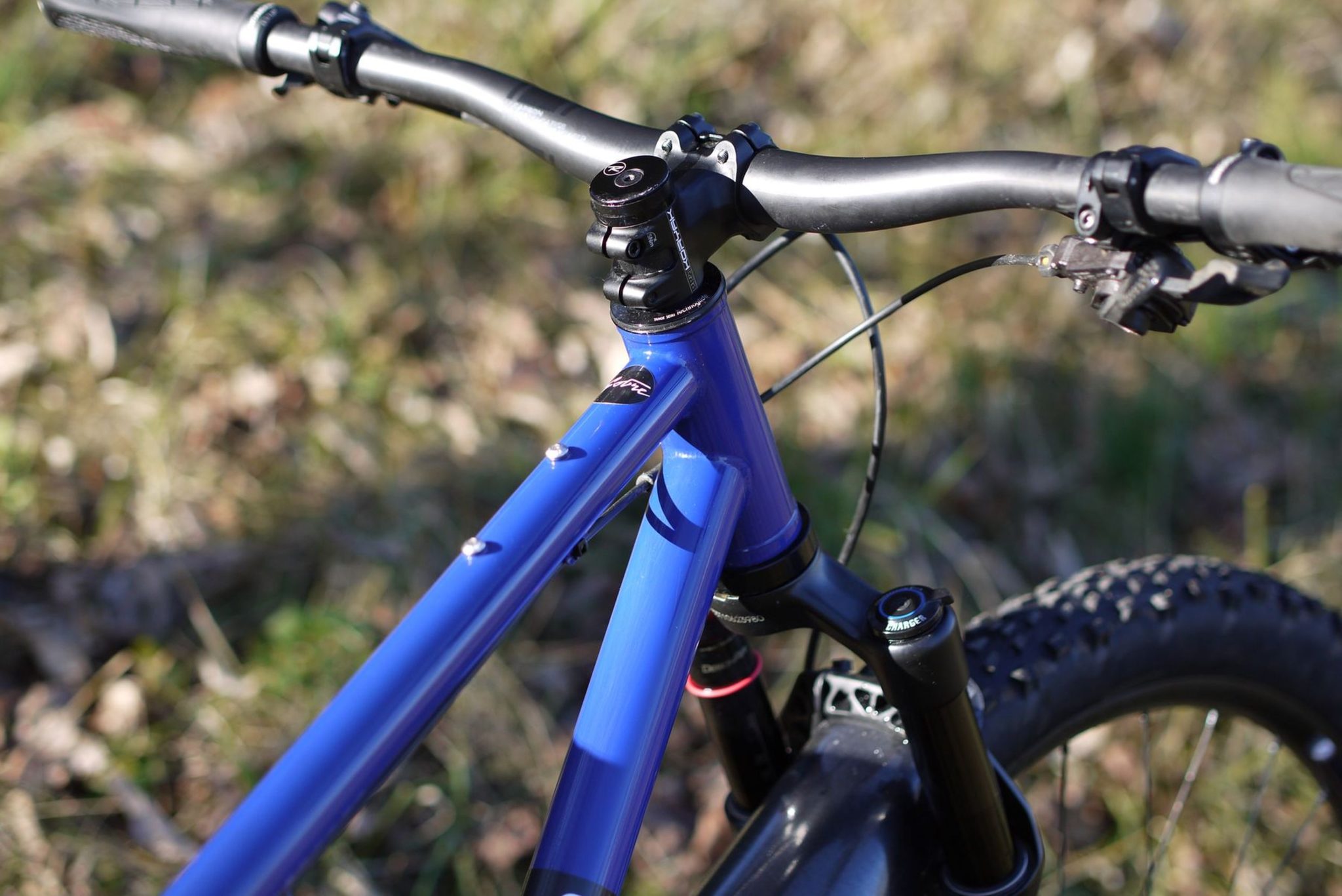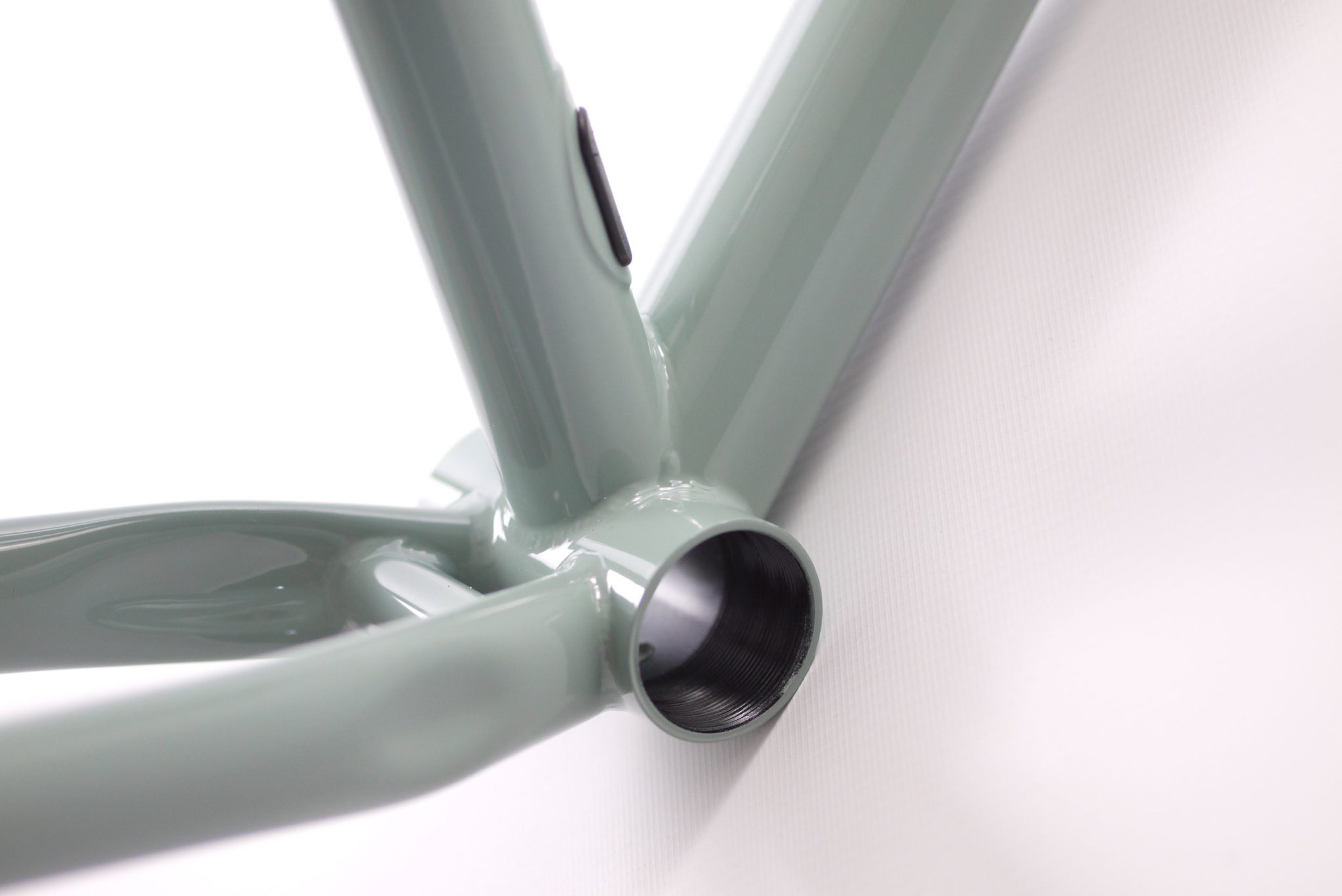Le cadre, entièrement en acier Cromo, a droit à l’habituel traitement par cataphorèse pour la protection anti-corrosion, recouvert d’une peinture (poudre cuite au four) Bleu noir ou Gris brume pour la finition. Il est annoncé à 2 540 g nu et taille ML.