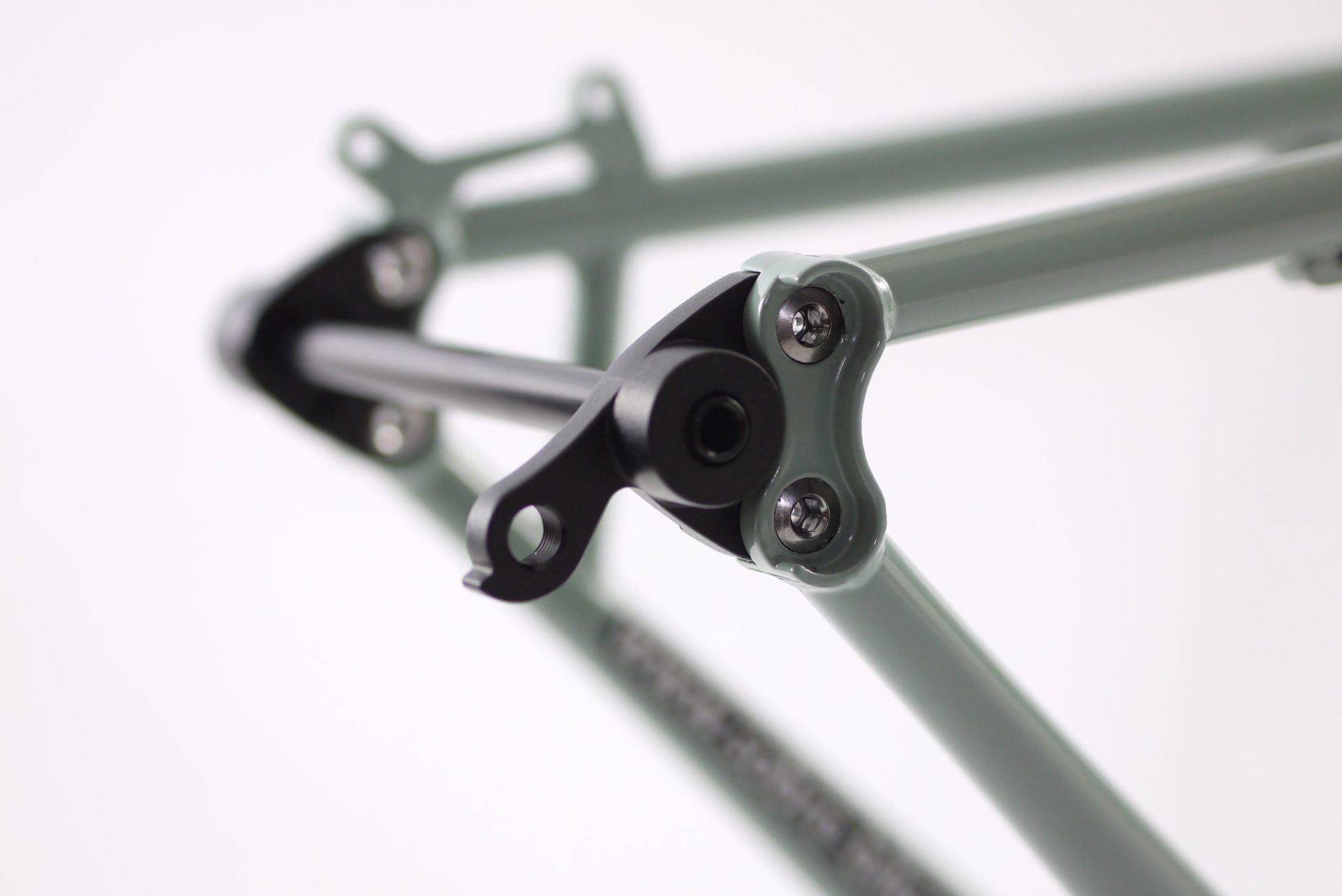 On note aussi la douille de direction en 44 mm de diamètre, pour accepter tous les formats de fourche, le boîtier de pédalier au standard BSA 73 mm, le support d’étrier de frein arrière au standard IS et non postmount ou encore les pattes de roue arrière compatibles avec le format 10×141 QR. Le triangle arrière est conçu pour accepter des pneus jusqu’à 2,35″ de section.